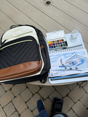 Stylish and spacious — fits all my art supplies, sketchbook, folding chair, and more. Perfect for urban sketching and travel, with smart compartments and a sleek look.