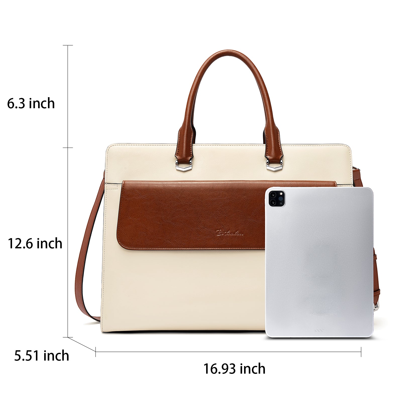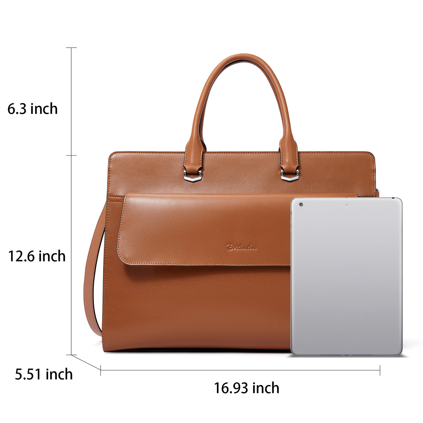 Practical Size for Needs -- (L) 16.73 x (W) 5.5 x (H) 12.60 inches. Handle drop is 6.30 inch. Net weight: 3.7lb / 1.68kg. Comfortable long shoulder strap comes with it. Nice gift for business ladies, girlfriend or daughter for business, travel or college. Ideal on everyday occasions!