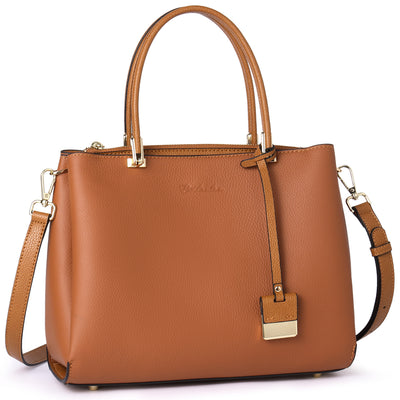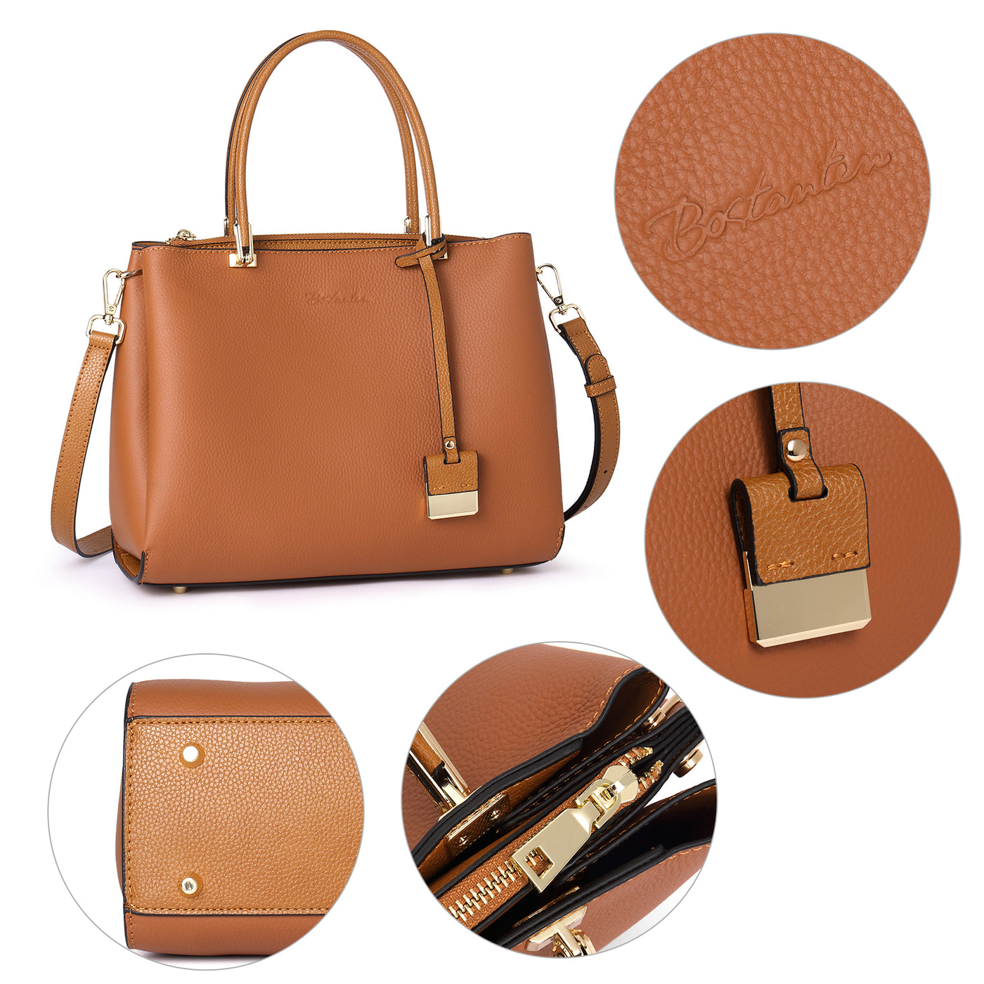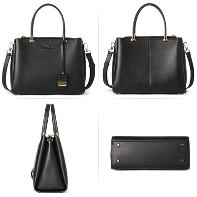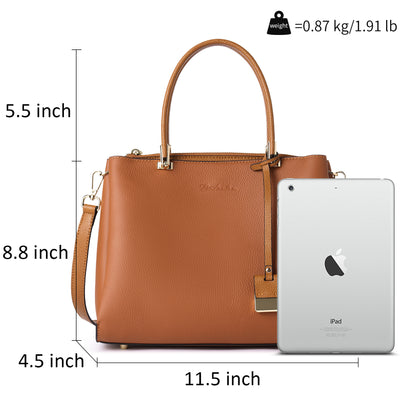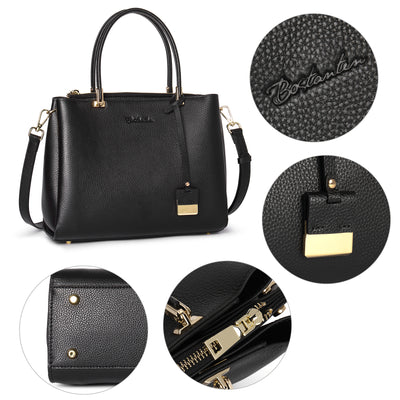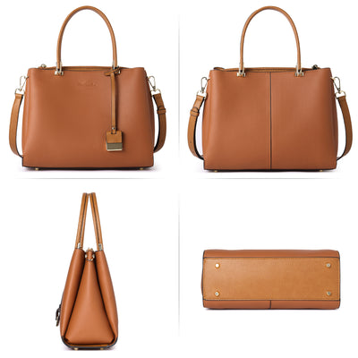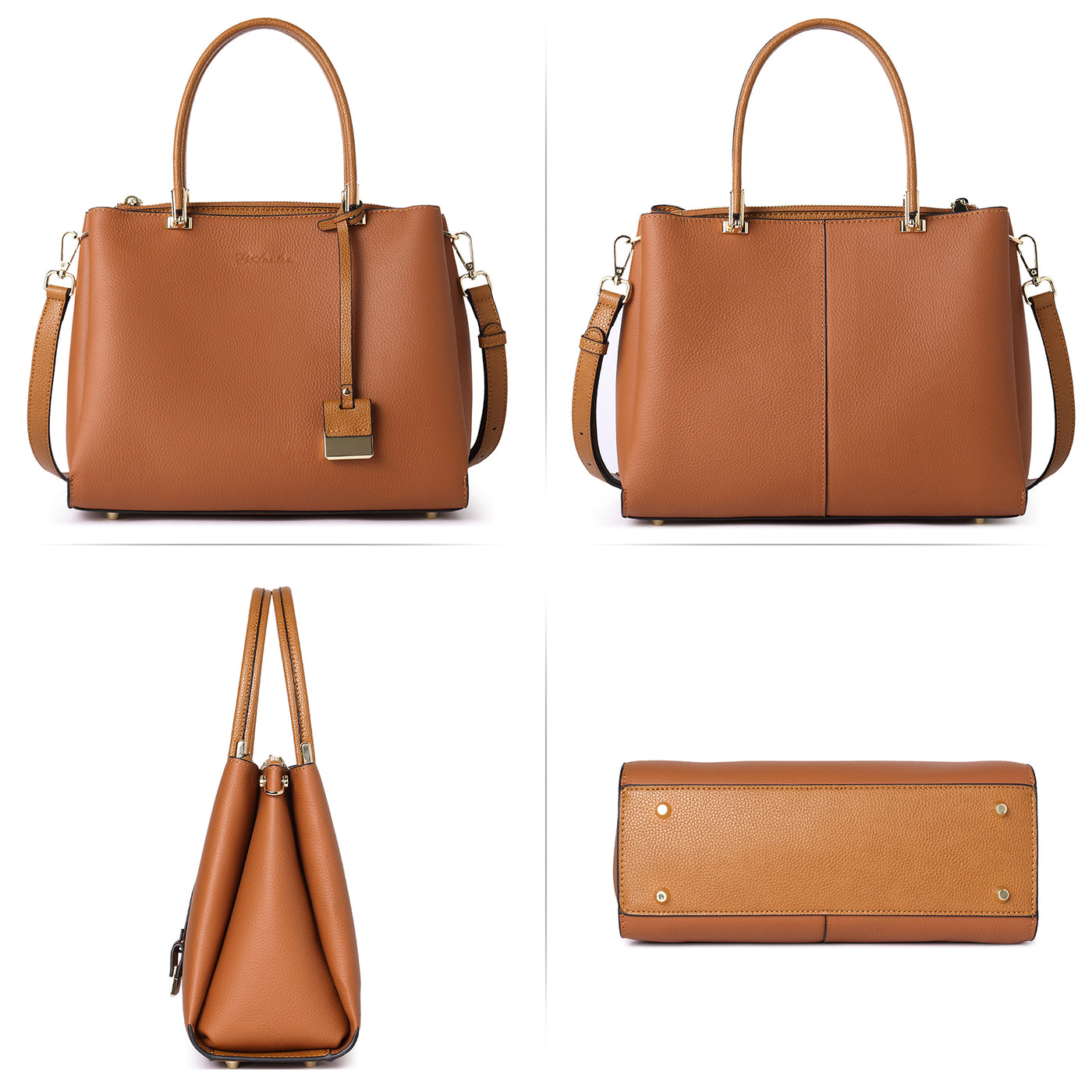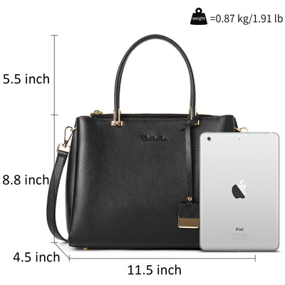 • Funtional & Stylish–Classic grainy leather feature with well soft hand-feeling. Convenient top round handle and triple compartment designe. Long strap length offer more carrying options as well as comfort. Adjustable and detachable for your need. Make this fashionable handbag your go-to pick or gift for her.