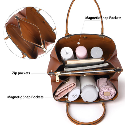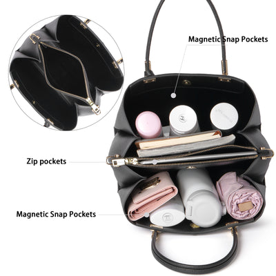 • Triple Compartment – Triple compartment including middle zipper pockets and 2 pockets with magnetic snap. Roomy and funtional, Suitable size and mulit-pocket design with divider, this handbags fits all your daily essentials and is just versatile for everyday use.