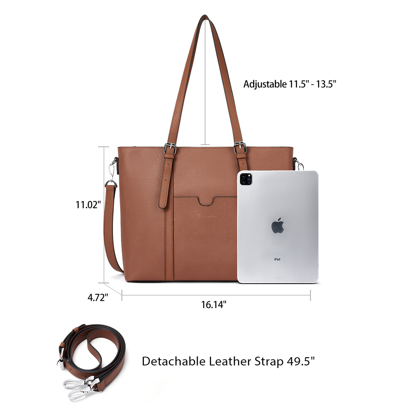 • Dimensions: (L)16.14" x (W)4.72" x (H)11.02" with an adjustable handle, enough on your shoulder handle drop is 11.5" -- 13.5". Also comes with a long shoulder strap(49.5" in length) for more carrying options: Handheld/ Single Shoulder/ Crossbody.