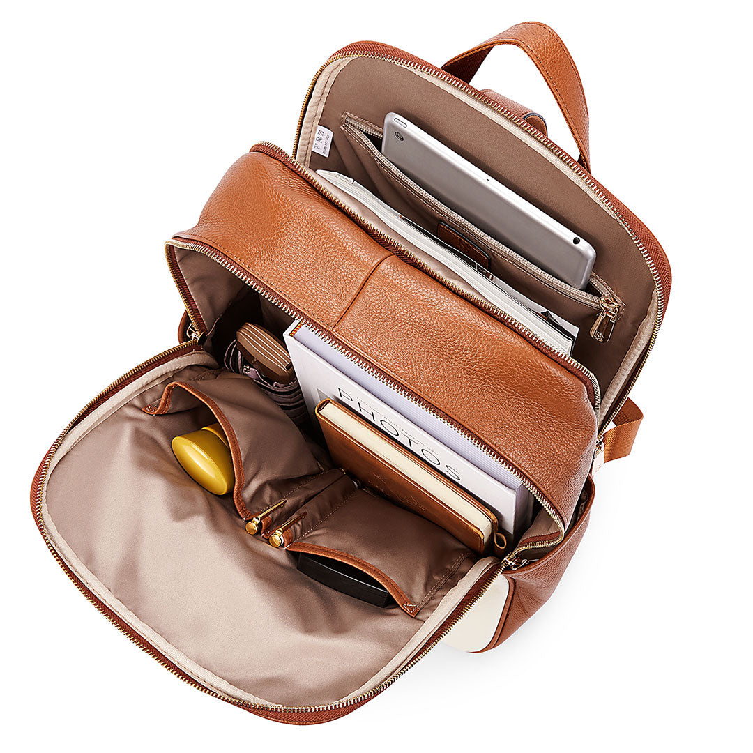 • High Quality -- The backpack is made of Genuine Leather and durable lining. Smooth U-zip allowed easy access. Adjustable straps are comfy that wouldn't dig into your shoulder.