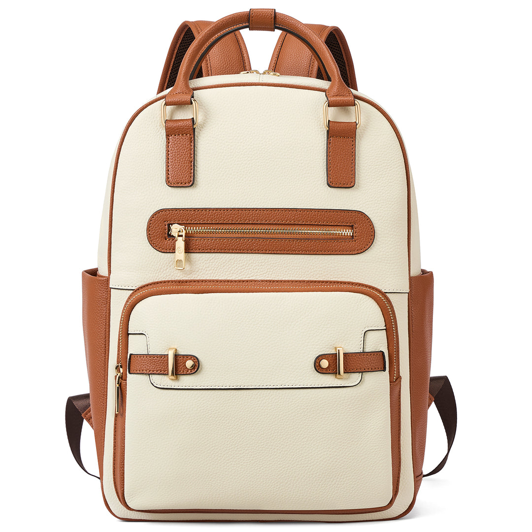 Smart Genuine Leather Laptop Backpack with Expandable Bottle Pocket