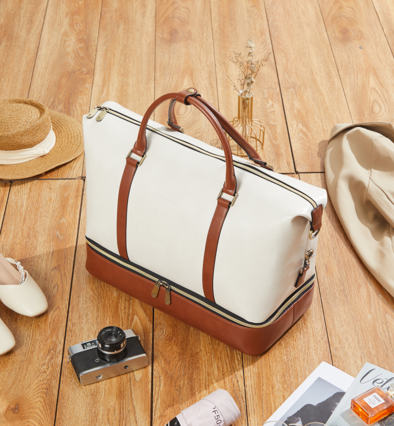 Judea Leather Travel Duffle Bag with Multiple Compartments