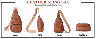• Perfect Size, Adjustable Strap - The leather sling bag is easy to carry, that size is 3.15" x 6.69" x 10.24", and weighs only 0.66 lbs. The stylish shoulder strap is detachable and can be adjusted left or right, and the length can be adjusted from 25 inches to 48 inches, providing optimal comfort. Its multi-functional design allows you to carry and use it in various ways, whether it’s across the body, over one shoulder, or as a hand-held bag
