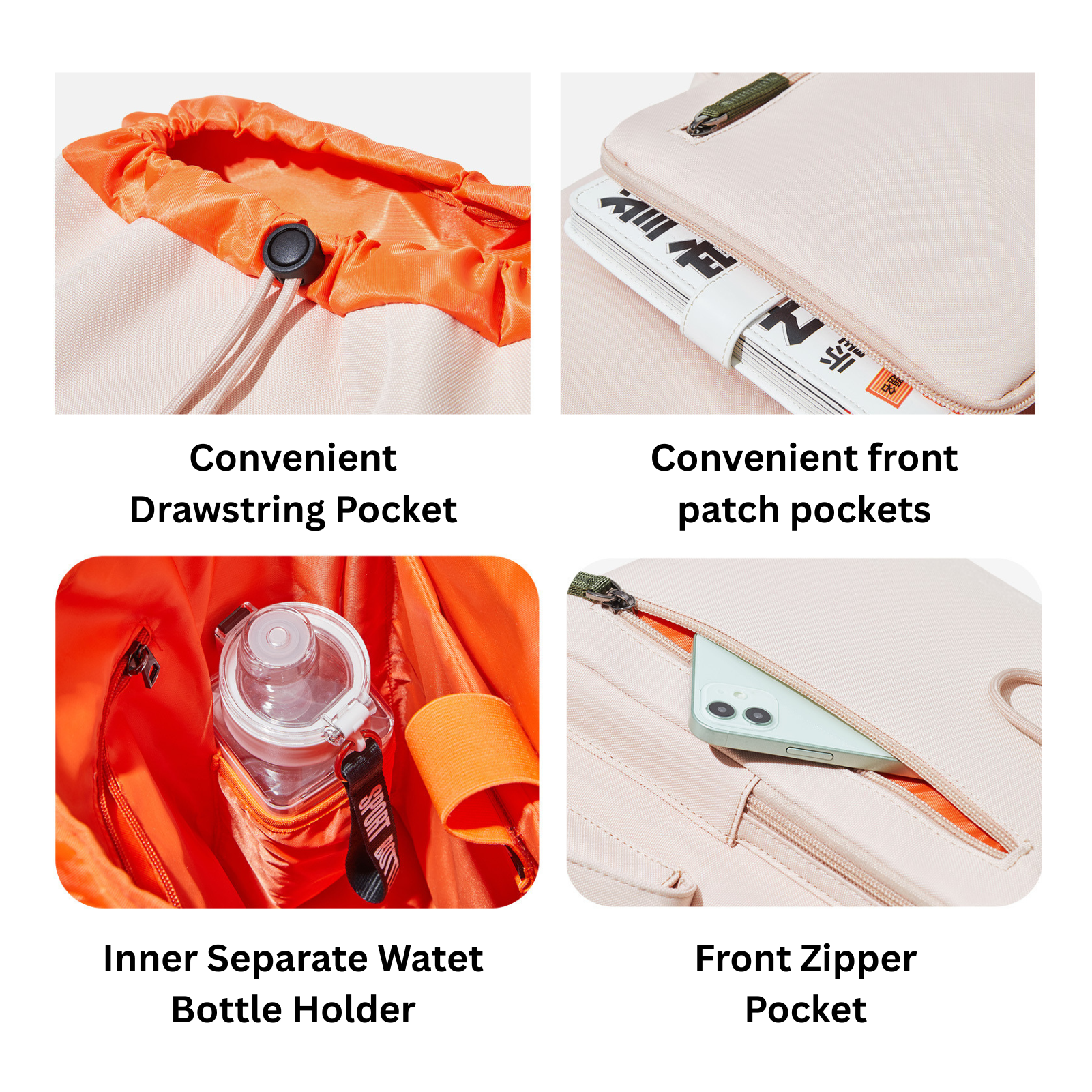 2 front zip pockets + 1 main bag (for 16-inch laptop, dimensions: 25*28*3 cm) + 1 hidden zip pocket + 2 side pockets (shoulder strap length approximately 45-95 cm, adjustable but non-detachable)