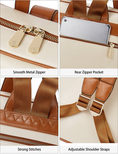 • ❖TOP COWHIDE LEATHER: This womens backpack purse crafted from high-quality genuine cowhide leather with superb craftsmanship to create a smooth, high-gloss leather. The high-end design makes this professional leather backpack look retro and fashionable. Made with the highest quality materials, luxurious details and flawless finishes, it will never out of style.