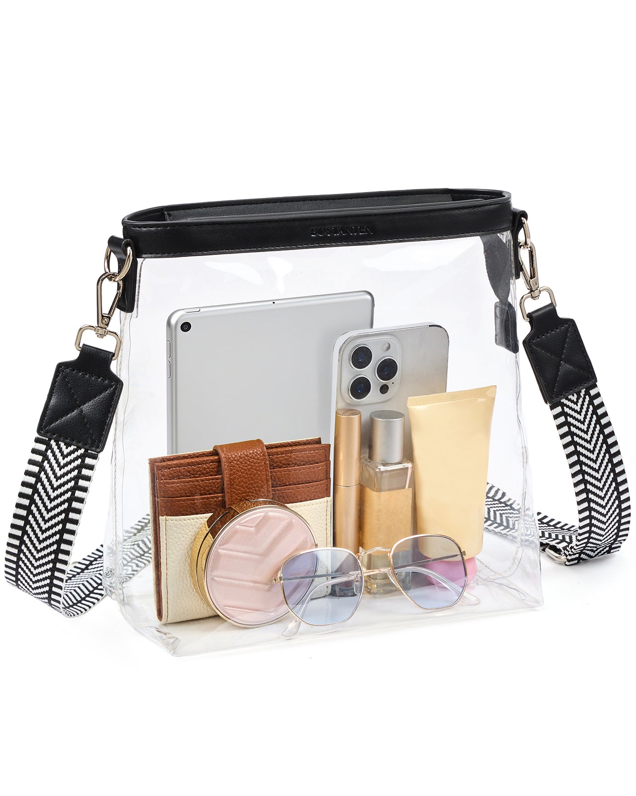 • Guitar Strap Comfort: Featuring a detachable, adjustable guitar strap (17.7"–24.8"), this transparent bag offers flexible styling. Wear it as a shoulder bag or crossbody purse—it's a stylish, hands-free clear purse with a guitar strap, made for all-day activities