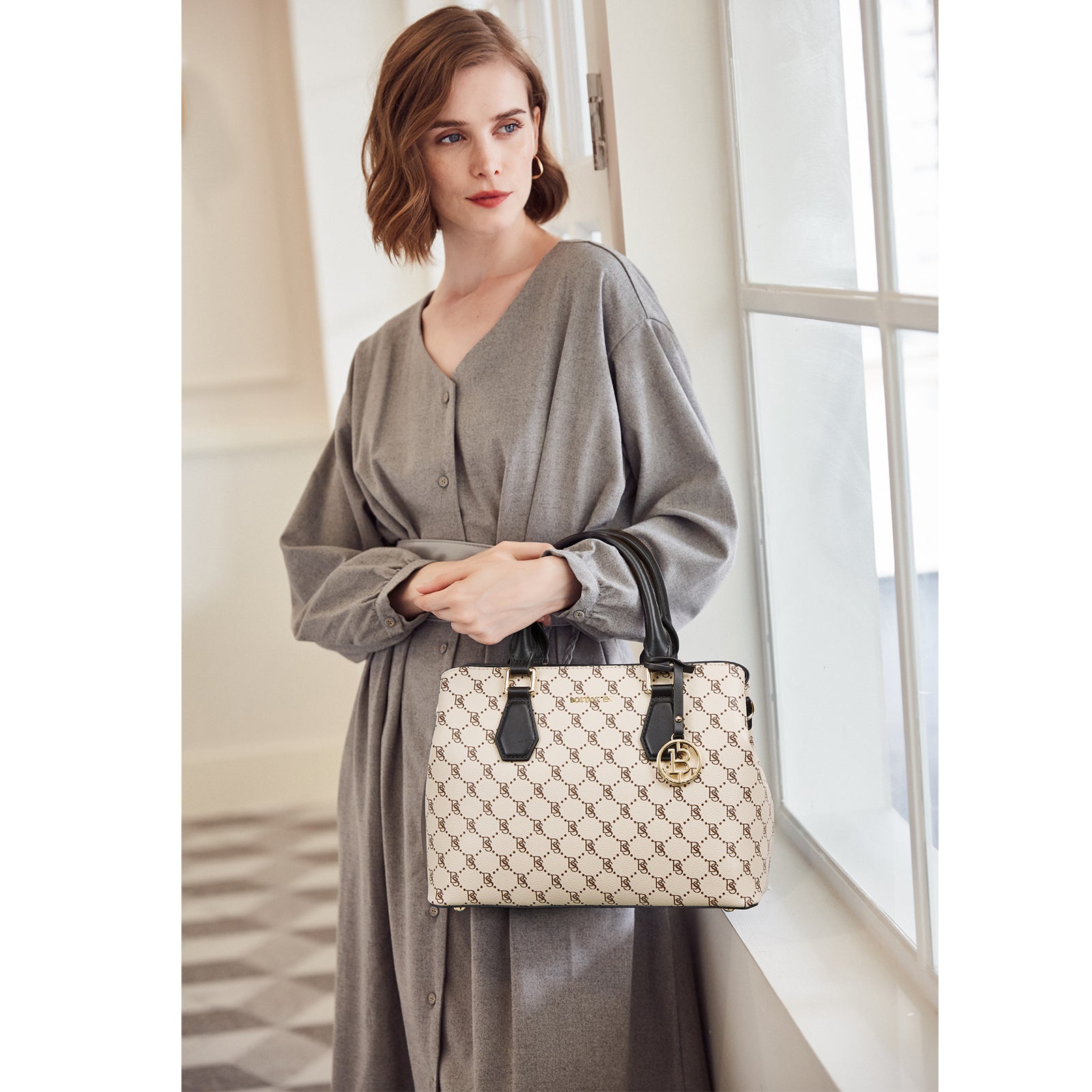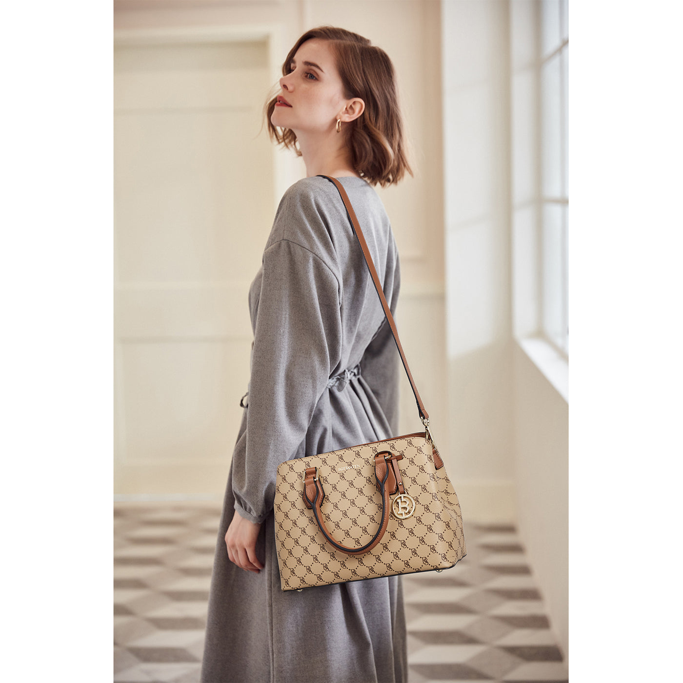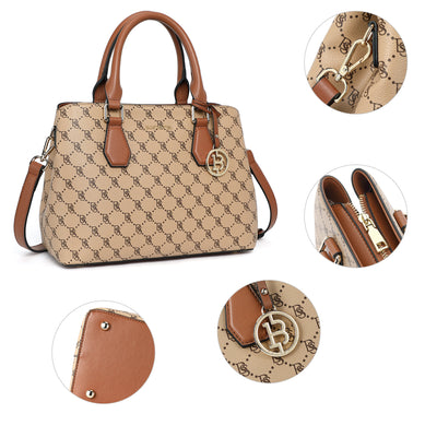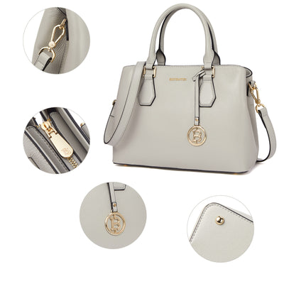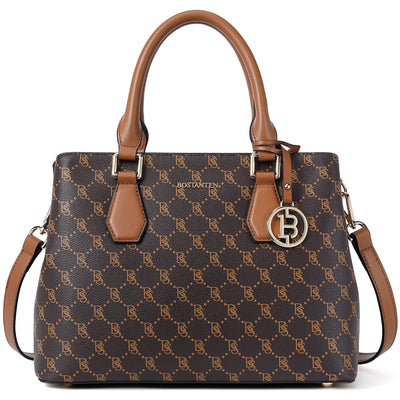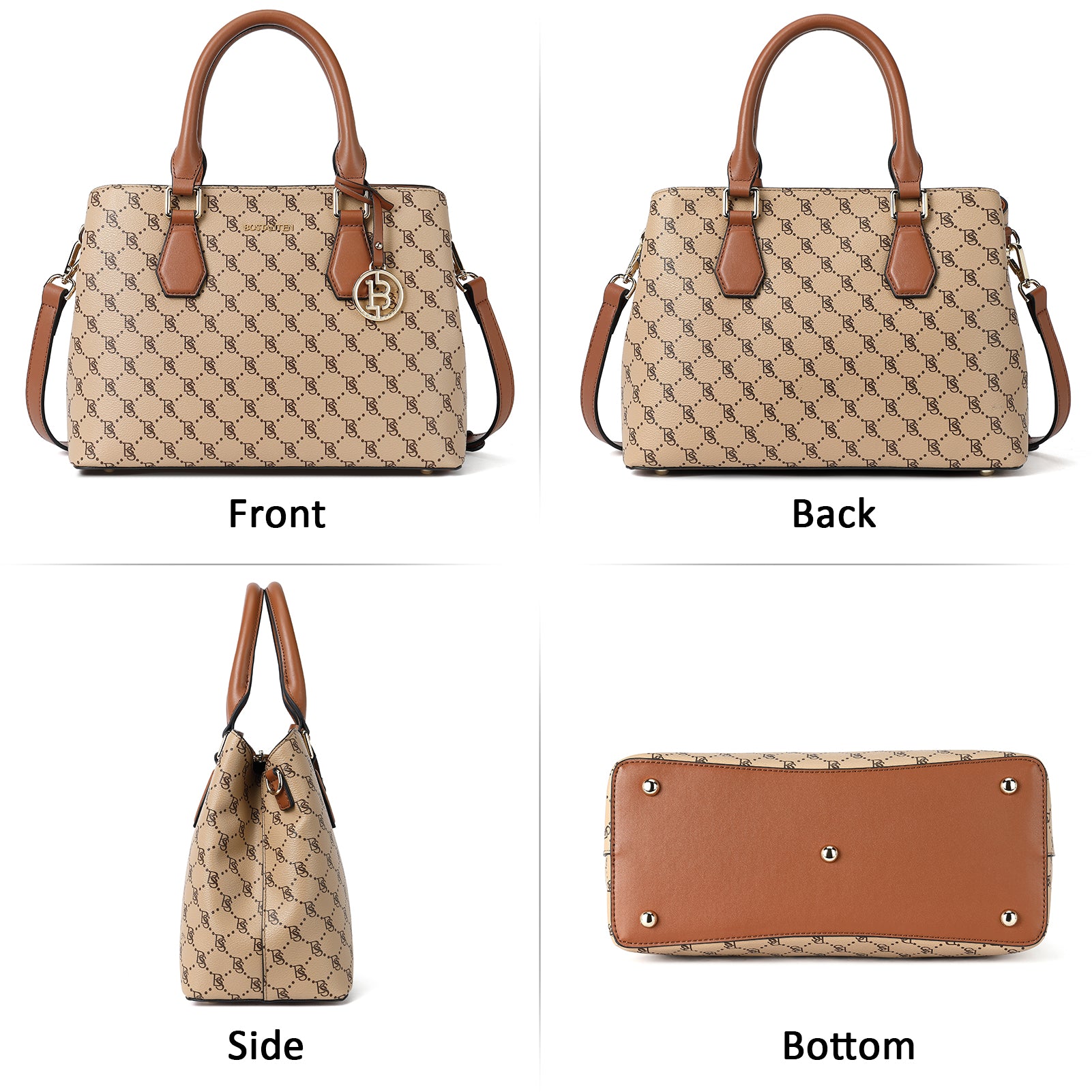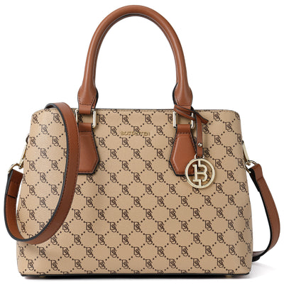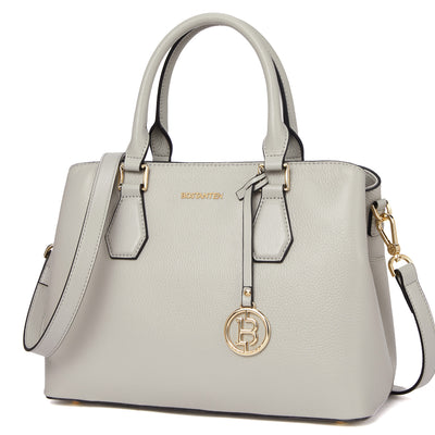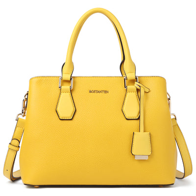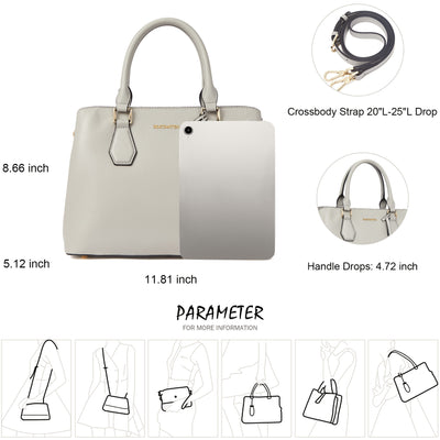 • High Quality--The handbag purse made from genuine textured leather with durable golden hardware, featured with metal feet on the bottom for well protection and stand upright without falling over. Apricot interior polyester lining smooth as silky. Zipper closure keeps your personal belongings safe.
