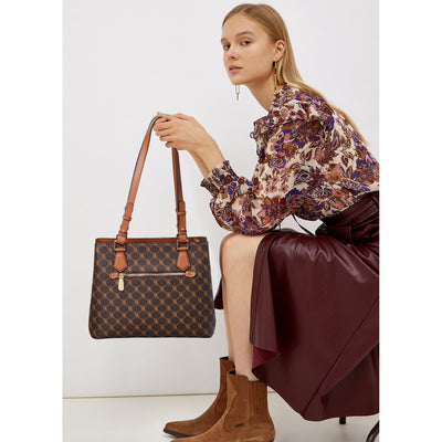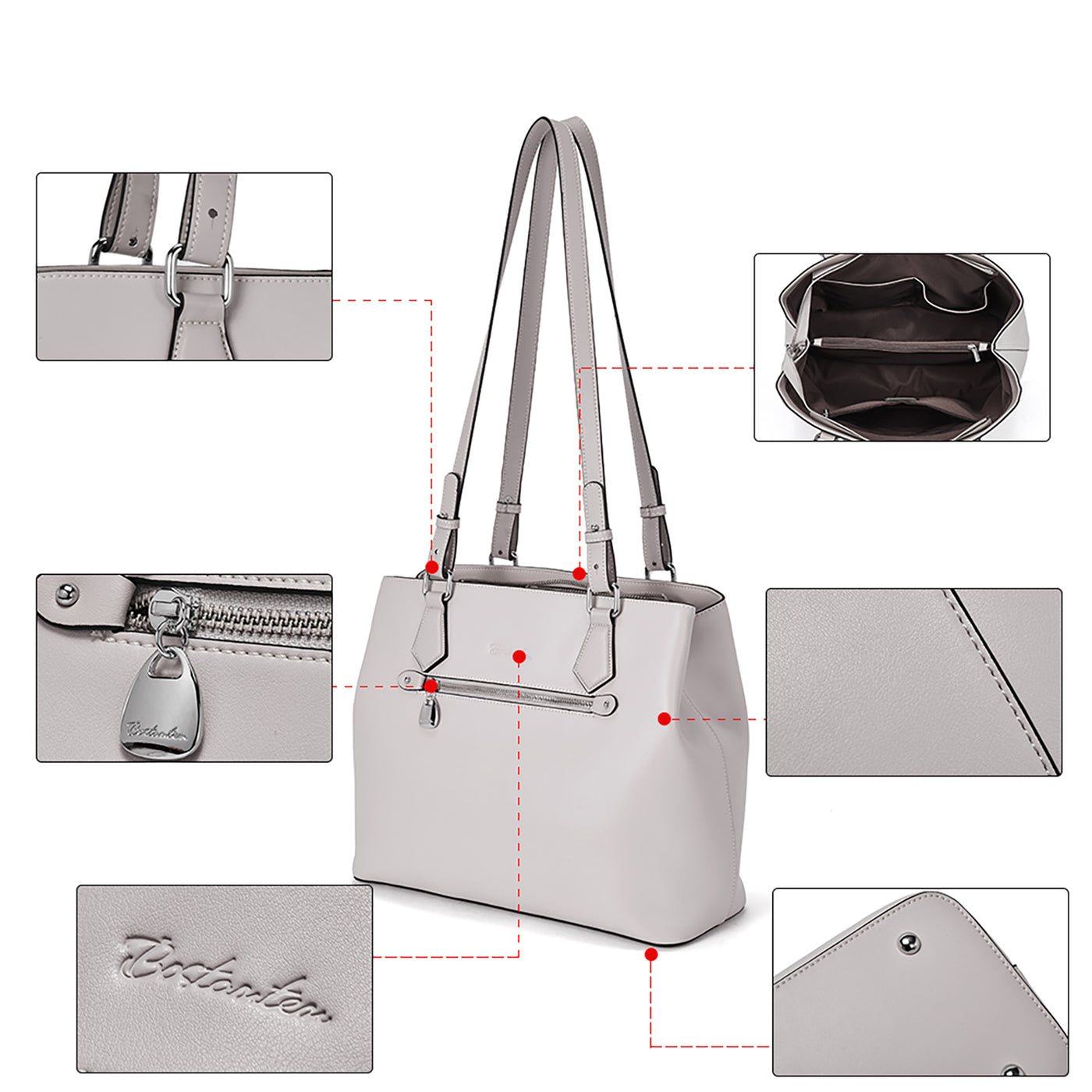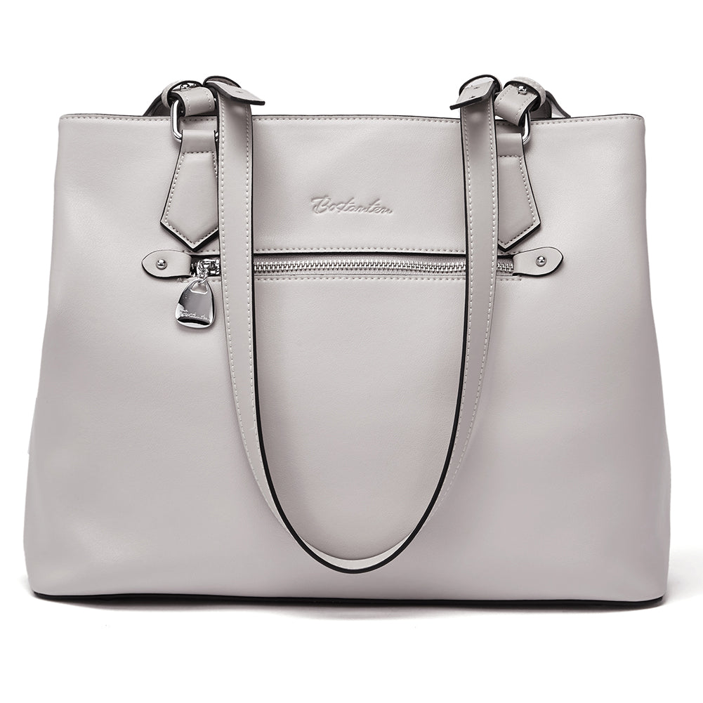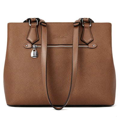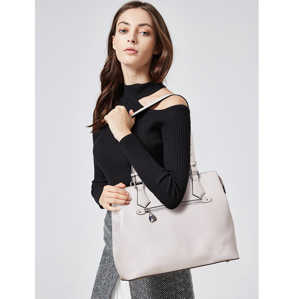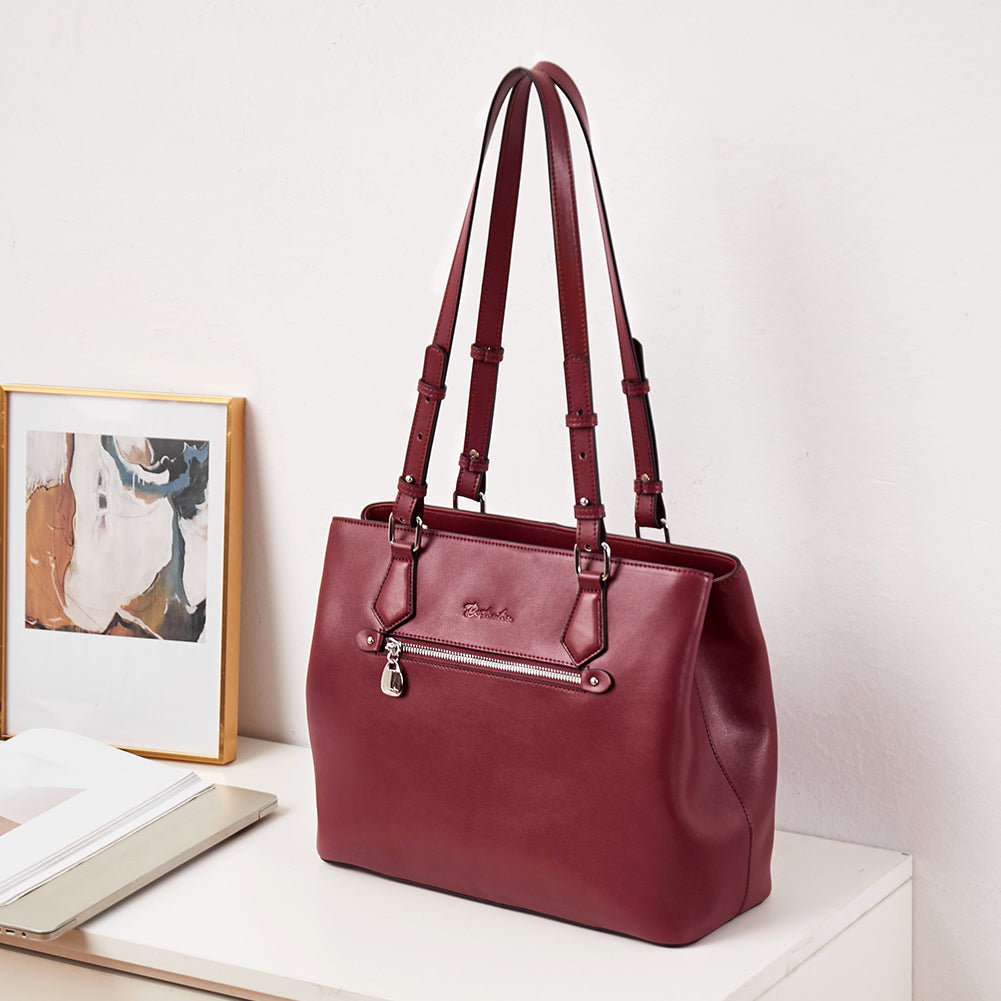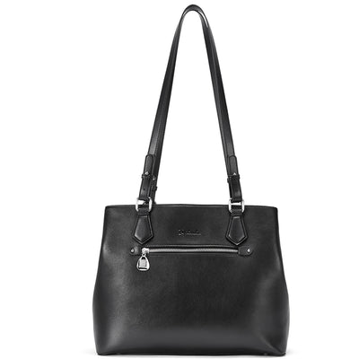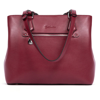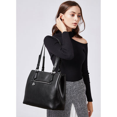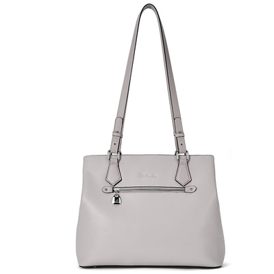 Nevin Structured Leather Shoulder Tote Bag - Front Zipper Pocket
