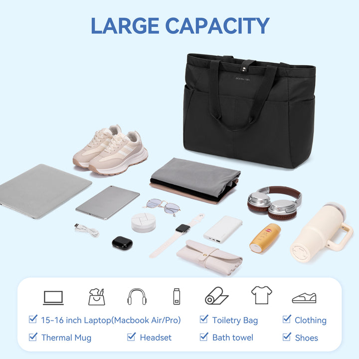 It features 13 pockets for organized storage, including compartments for essentials like sunglasses, water bottles, and phones. With its spacious capacity, it's ideal for beach trips, travel, or everyday use. The tote can be easily folded into a compact size, fitting into a suitcase or backpack. It's multifunctional, suitable for work, gym, camping, or as a reusable grocery bag, and makes a great gift for women.