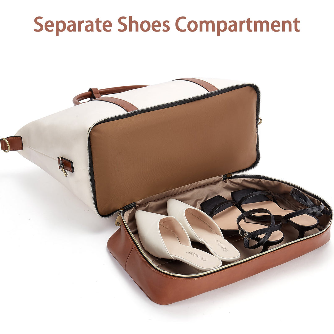 • Roomy Capacity -- Here’s the inner Structure : 1 main compartment, 1 inner zipper pocket, 2 inner open pockets and 2 pen slots, 1 back zipper pocket.The shoe compartment size is 17.72''(L)*8.66"(W)*3.54(H)",which can hold your shoes or dirty clothes for easy separation from clean stuff when traveling.You could organize all your daily items well for weekend picnic or vacation trip.