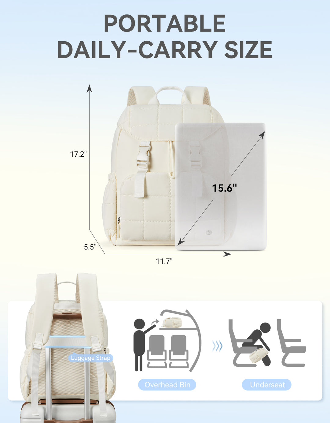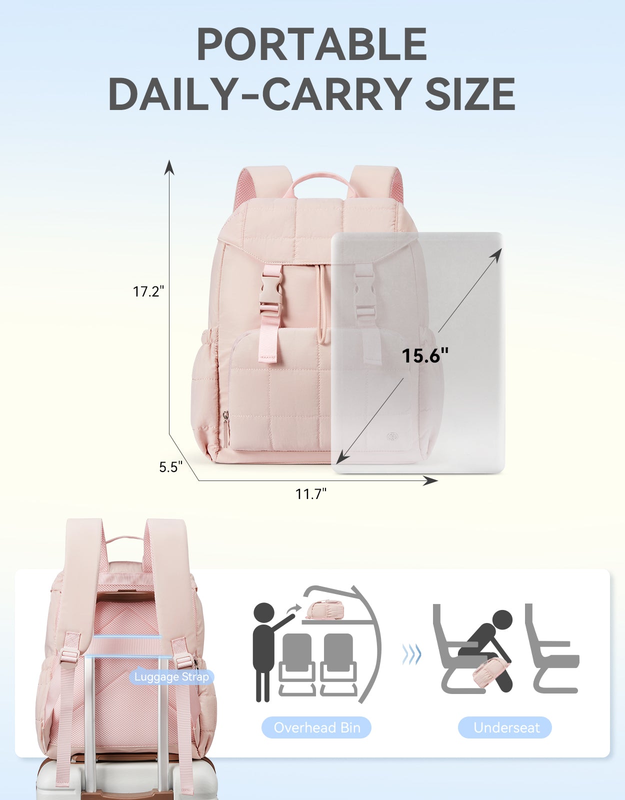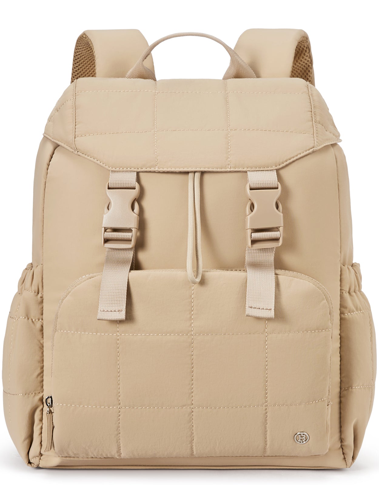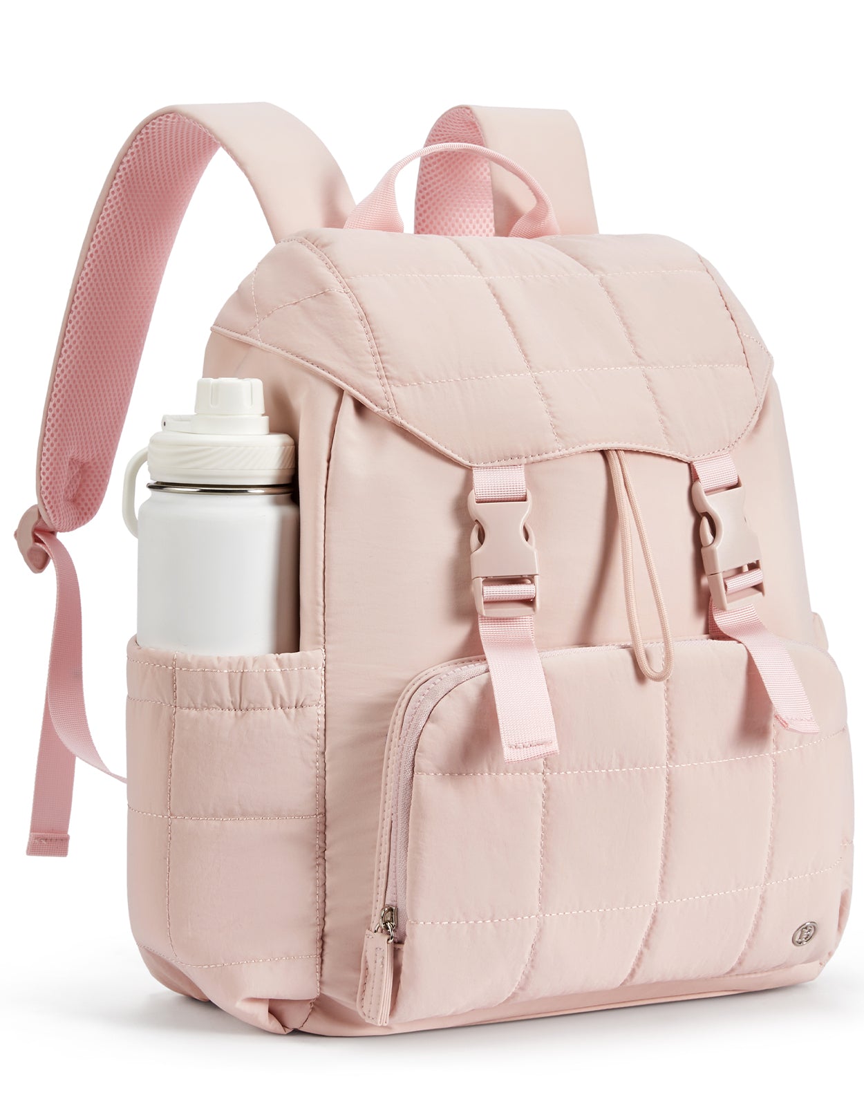 This stylish and functional women's backpack offers a roomy capacity with multiple compartments, including a padded laptop section for up to 15.6-inch devices, RFID-protected pocket, and anti-theft features. Designed for comfort with padded straps and a breathable back panel, it also boasts a user-friendly drawstring closure and trolley sleeve for travel convenience. Crafted from soft, lightweight, and water-resistant Taslan fabric with a quilted design, it’s perfect for daily use, commuting, or weekend trips.
