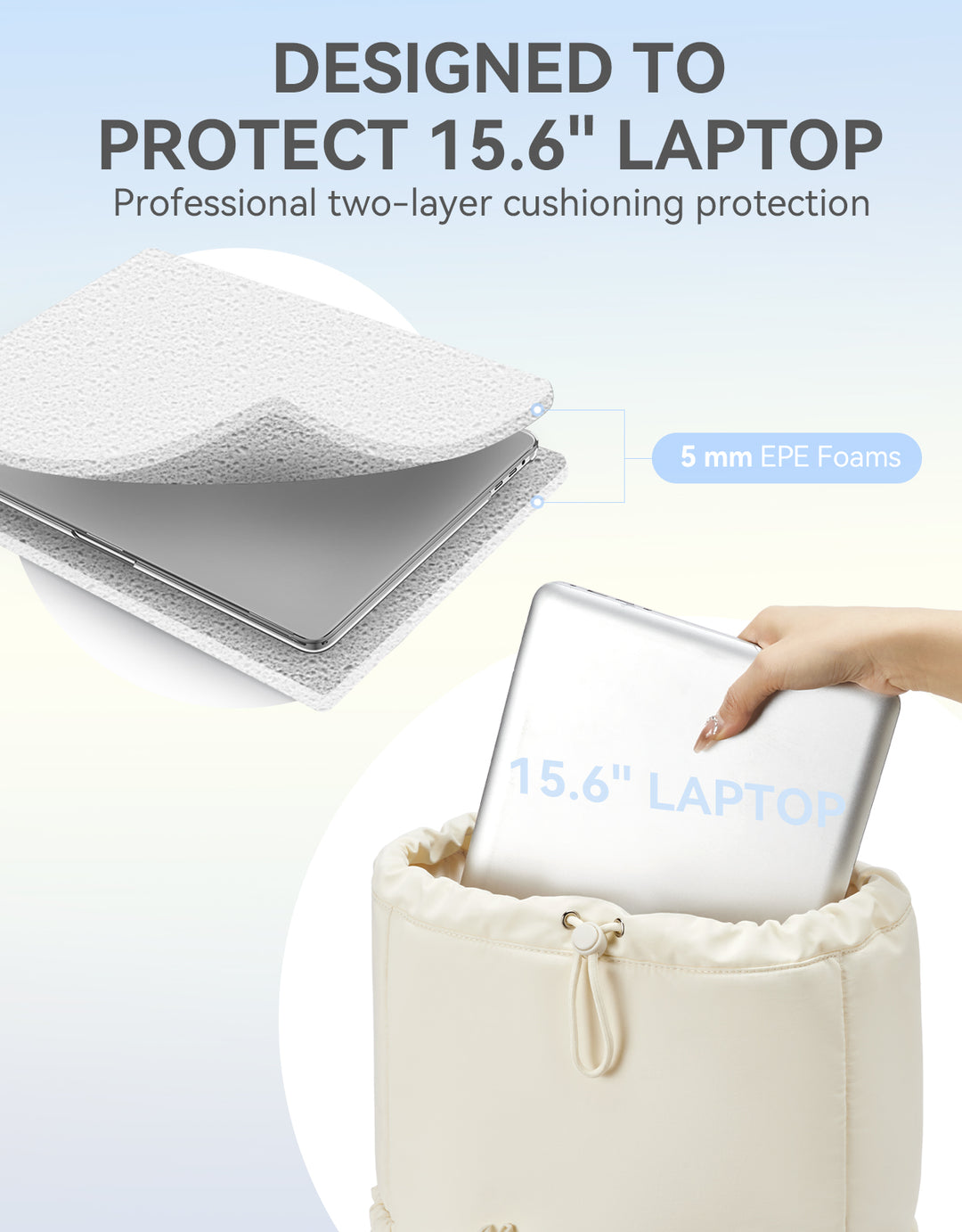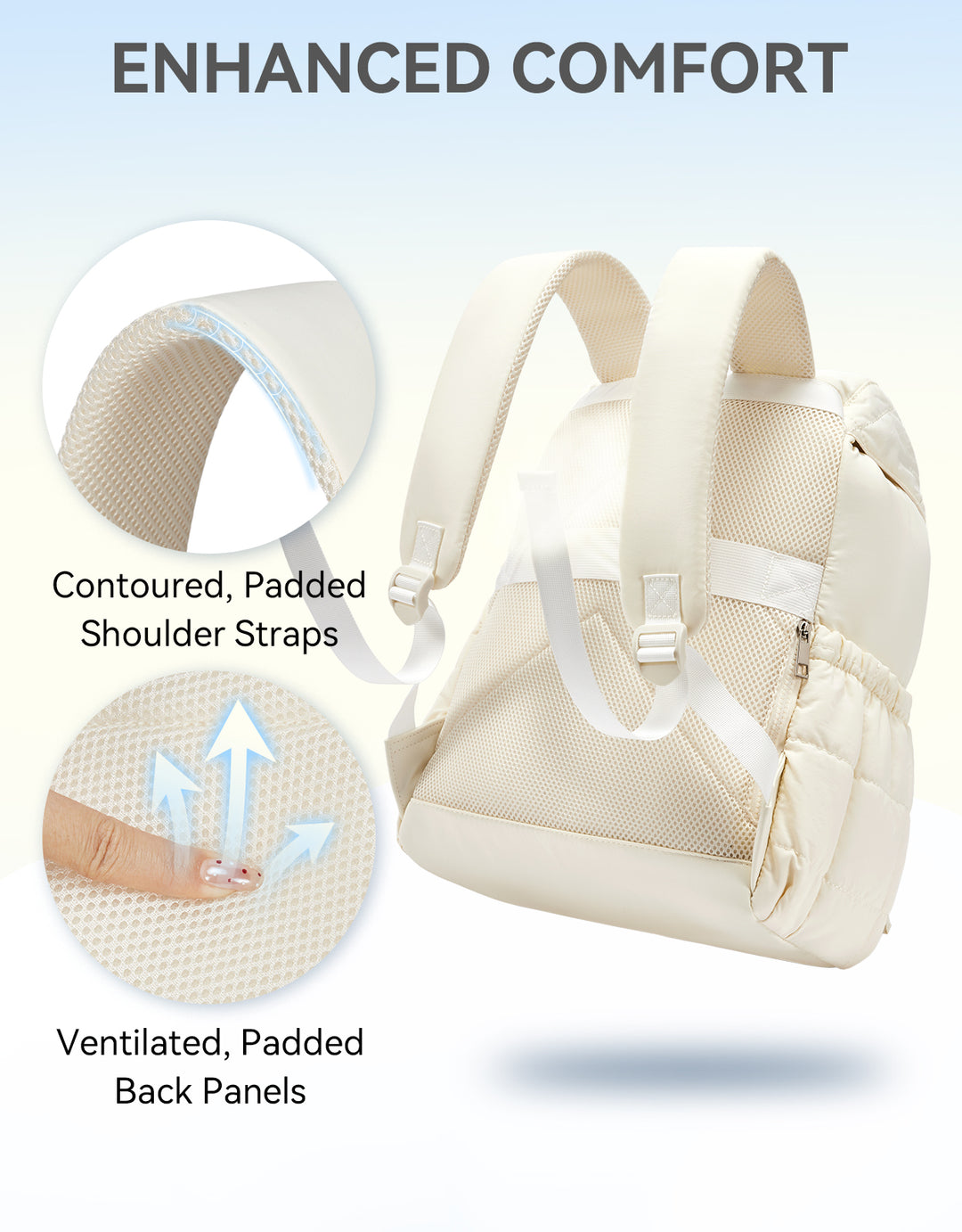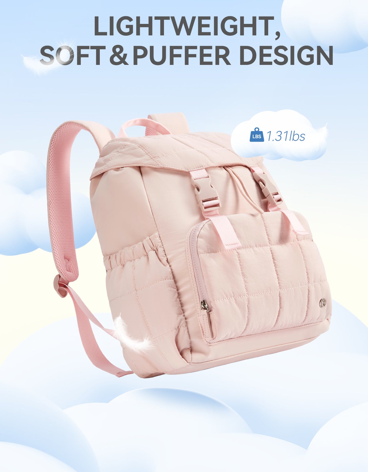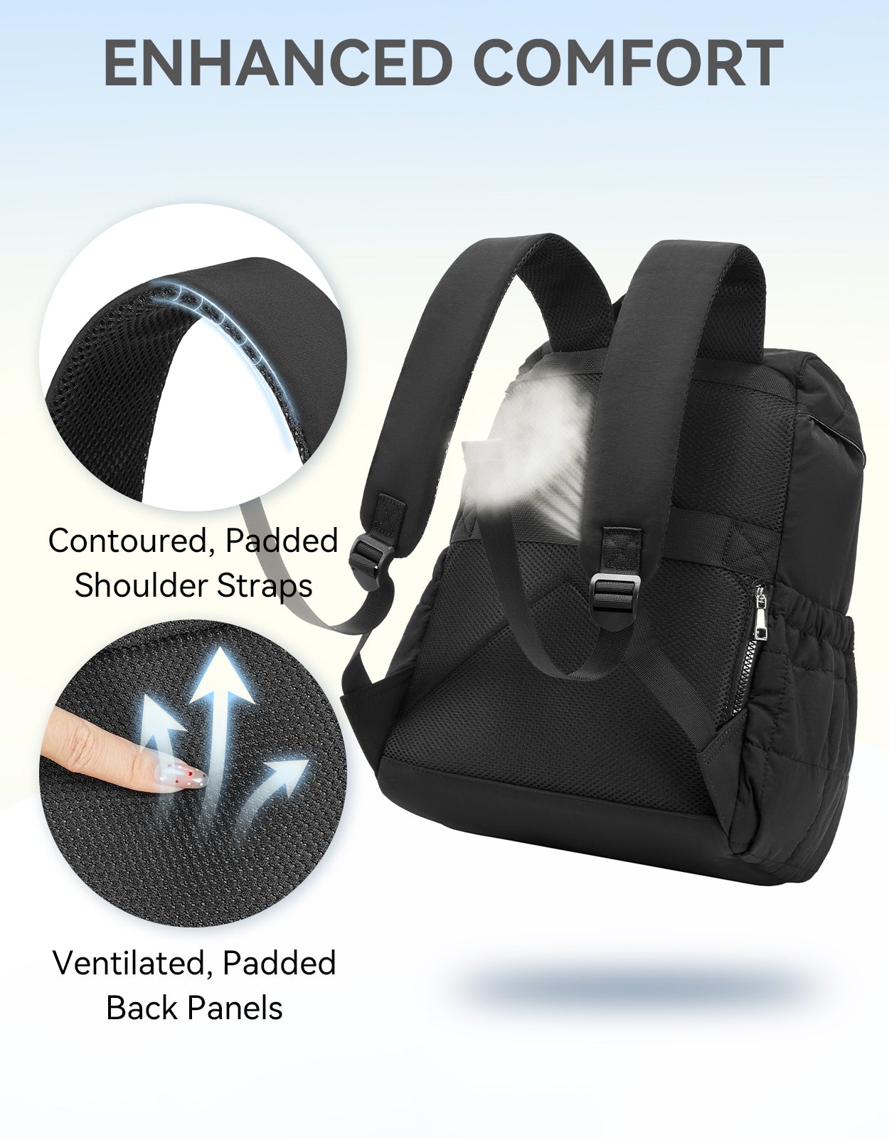 This stylish and functional women's backpack offers a roomy capacity with multiple compartments, including a padded laptop section for up to 15.6-inch devices, RFID-protected pocket, and anti-theft features. Designed for comfort with padded straps and a breathable back panel, it also boasts a user-friendly drawstring closure and trolley sleeve for travel convenience. Crafted from soft, lightweight, and water-resistant Taslan fabric with a quilted design, it’s perfect for daily use, commuting, or weekend trips.