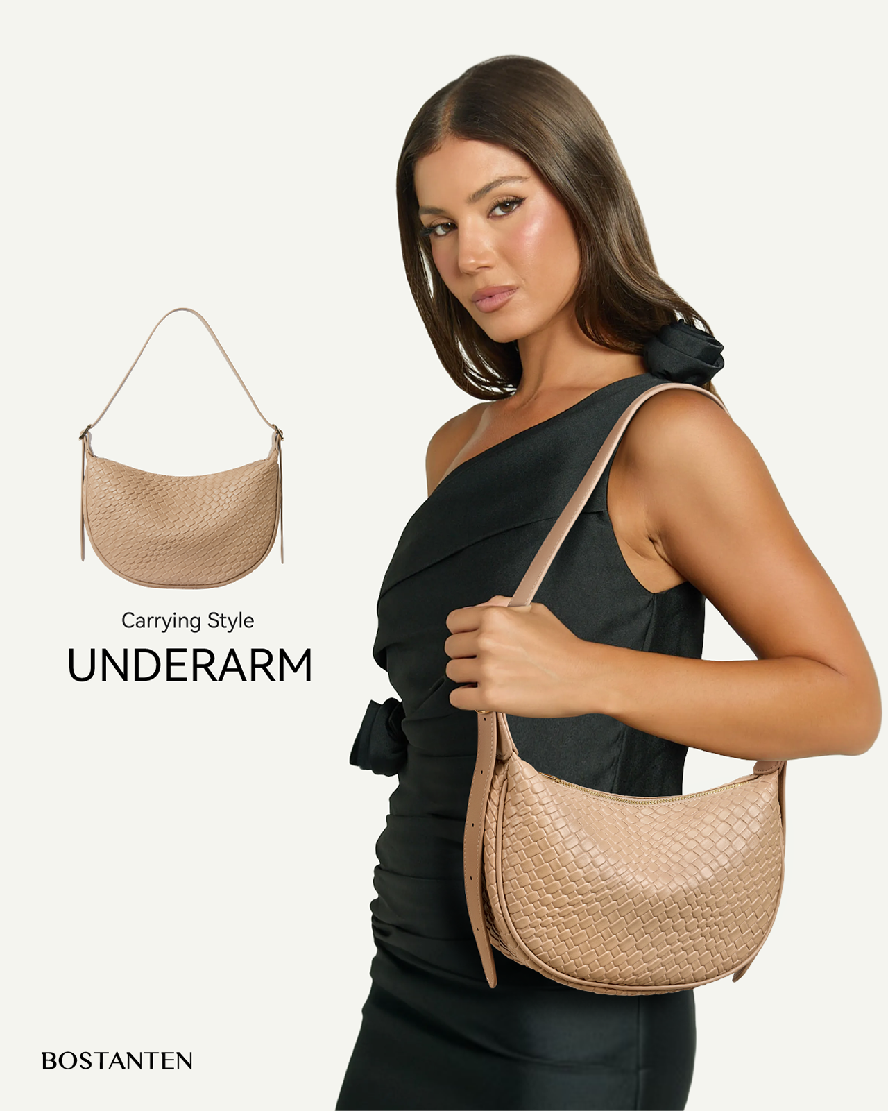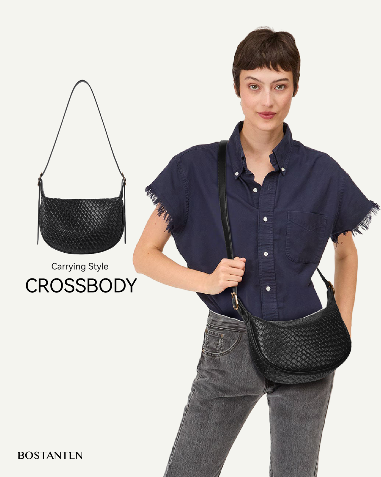 KWELI – Halbmond-Umhängetasche aus gewebtem Leder