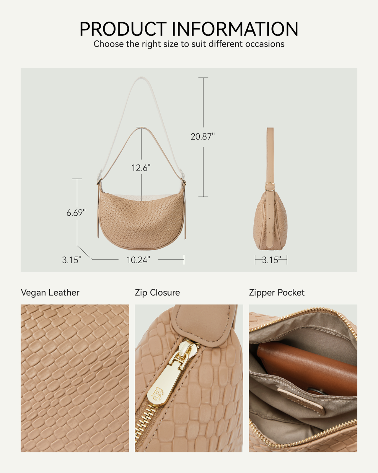 • Vielseitig für jeden Anlass – Diese halbmondförmigen Handtaschen für Damen sind sowohl formell als auch leger und eignen sich für verschiedene Anlässe, sodass Sie problemlos von Tag zu Nacht wechseln können. Tagsüber, wenn Sie mit leichtem Gepäck reisen oder zur Arbeit gehen, bietet sie genügend Platz, um Ihre Sachen aufzubewahren und Ihre Hände frei zu halten. Sie können sie auch in eine formelle Tasche verwandeln und am Ende des Tages ein romantisches Abendessen genießen.