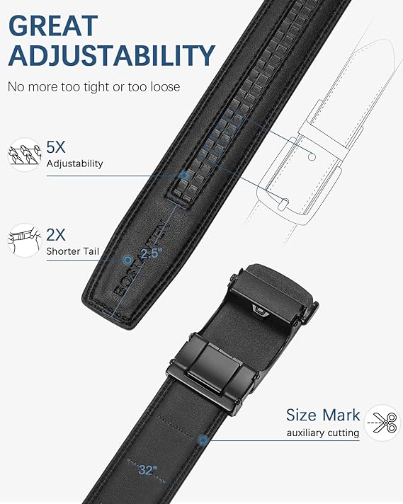 It has an auto-lock buckle for instant adjustment and a cuttable design for a custom fit, ensuring comfort without digging in. Made from Italian leather with a scratch-resistant buckle, it’s perfect for both casual and business wear. Packaged in a stylish gift box, it’s an ideal gift for men.