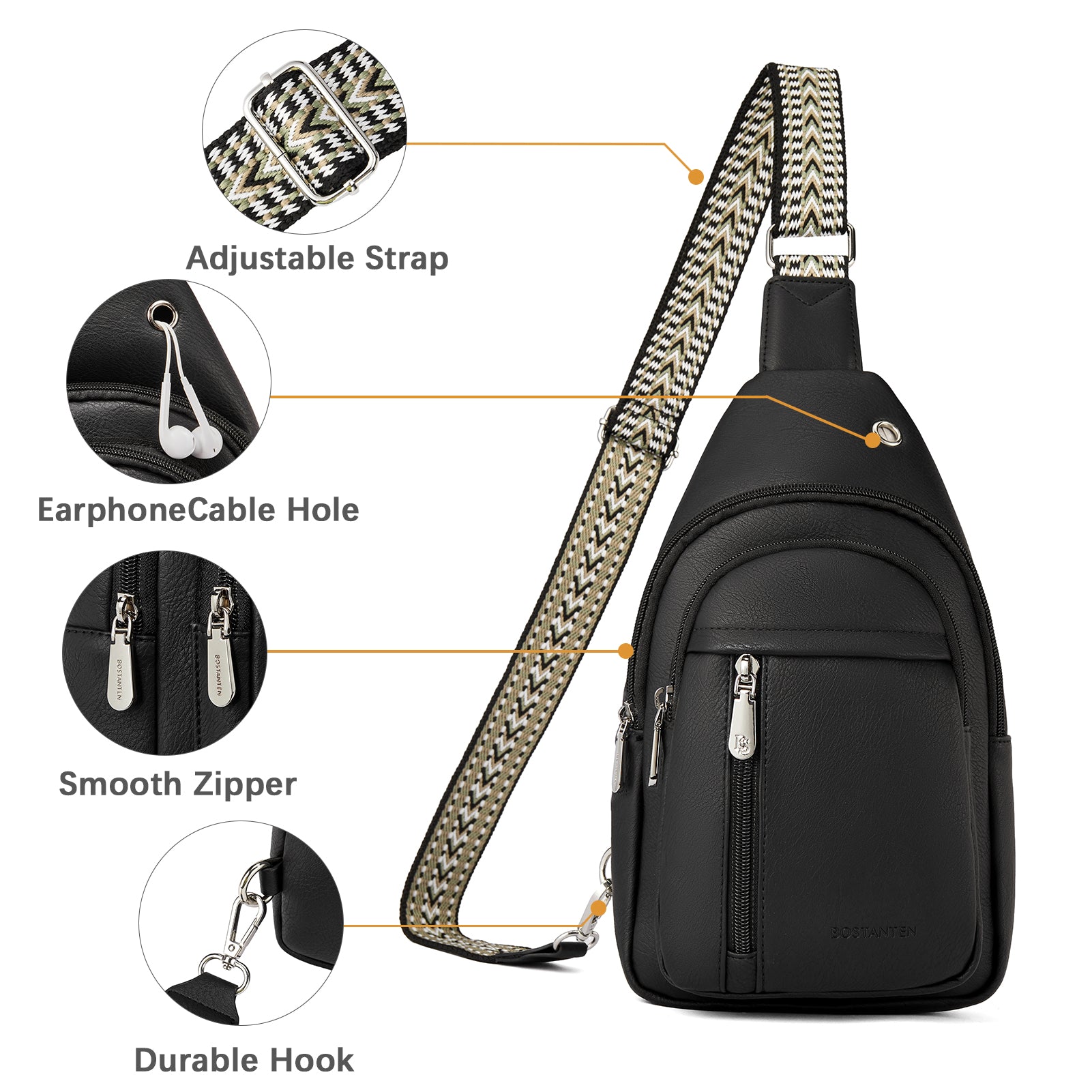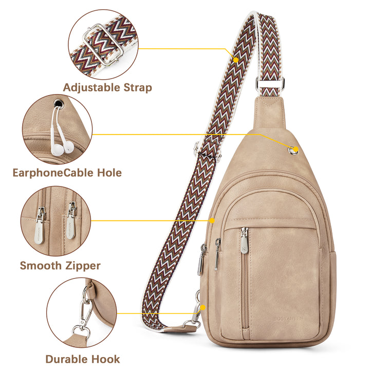 The BOSTANTEN sling bag appears to be designed to provide users with a fashionable, hands-free, and versatile carrying solution for their everyday needs and travel.