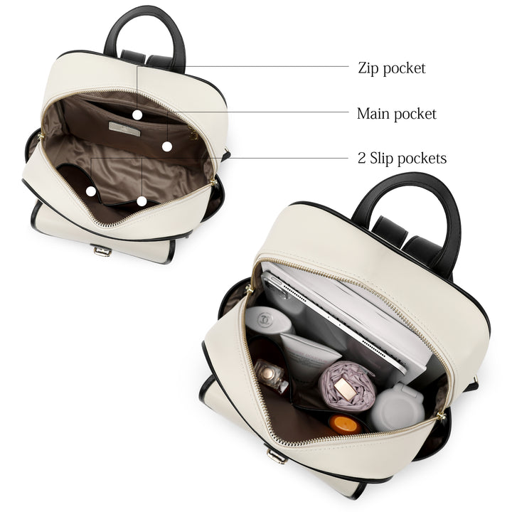 • 【Structure】This roomy backpack purse has 1 main storage compartment, 1 interior back-wall zipper pocket, 2 interior side pouches, 1 exterior back zipper pocket,1 exterior front pocket with magnetic snap buckle, and a slim pocket on each side.