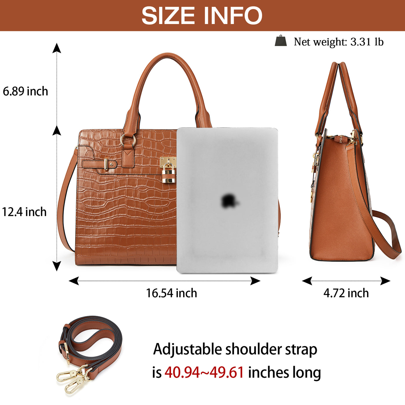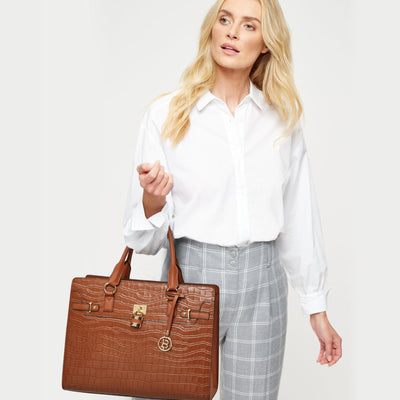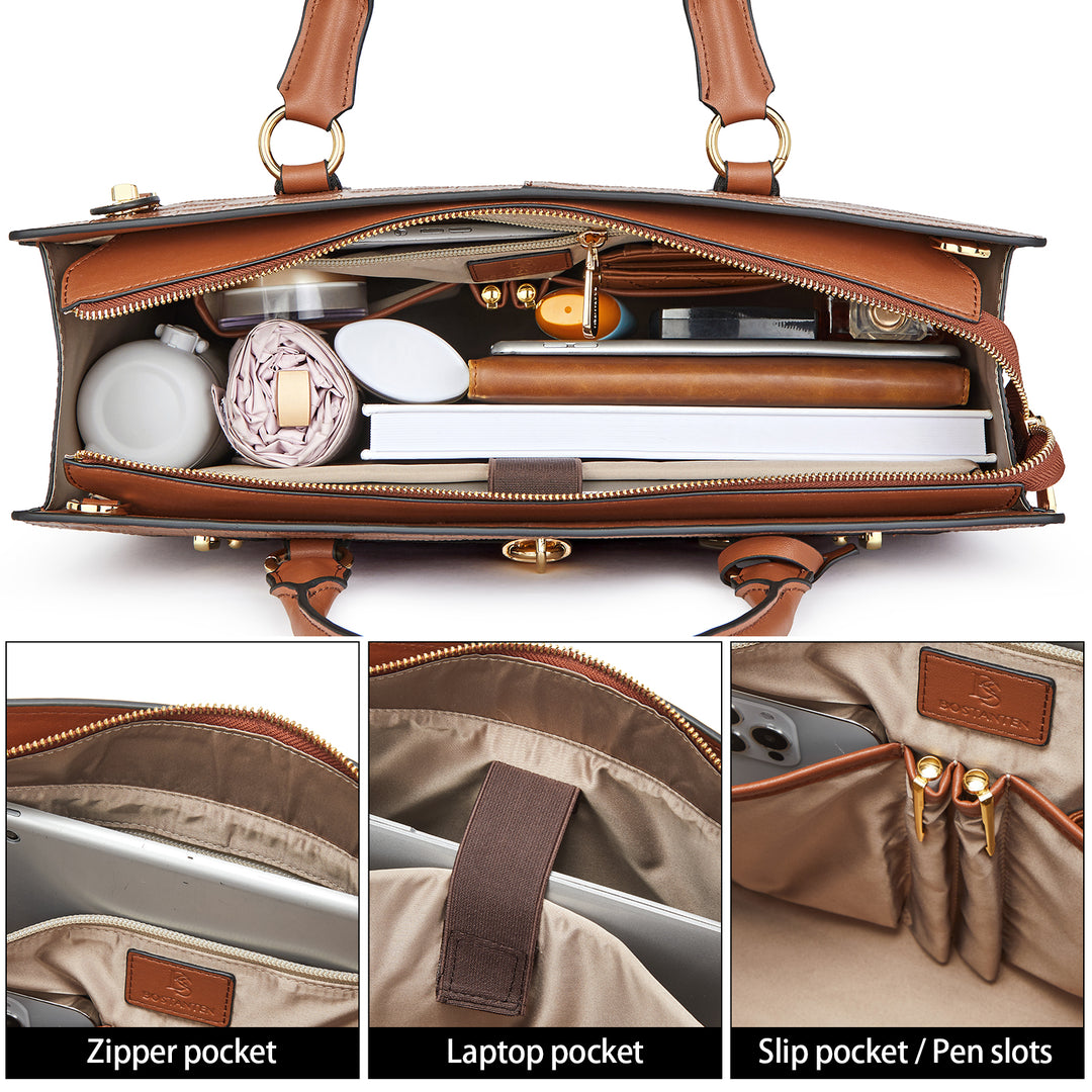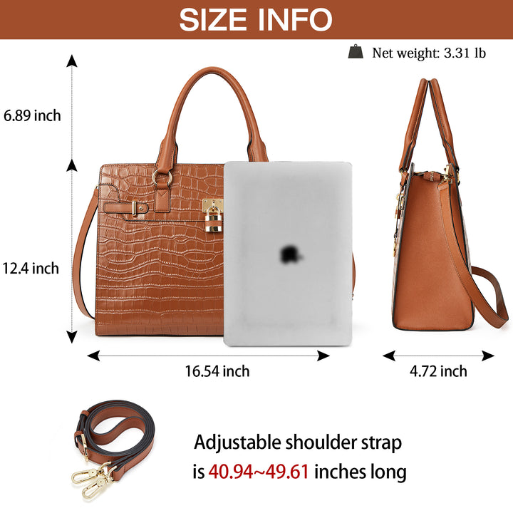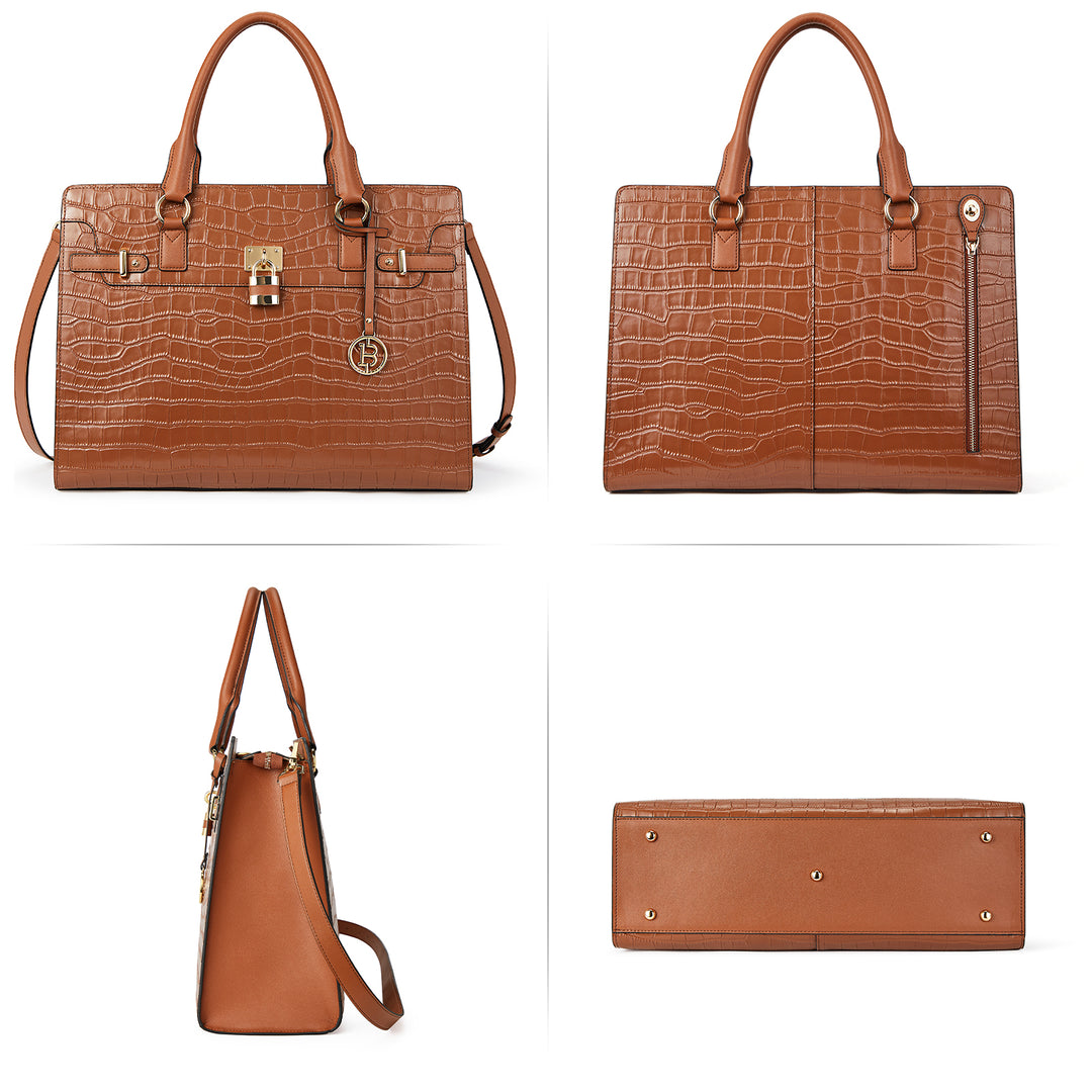 It is Beautiful! Classy! Large enough to easily hold her laptop, notebook, pens, contracts, etc.