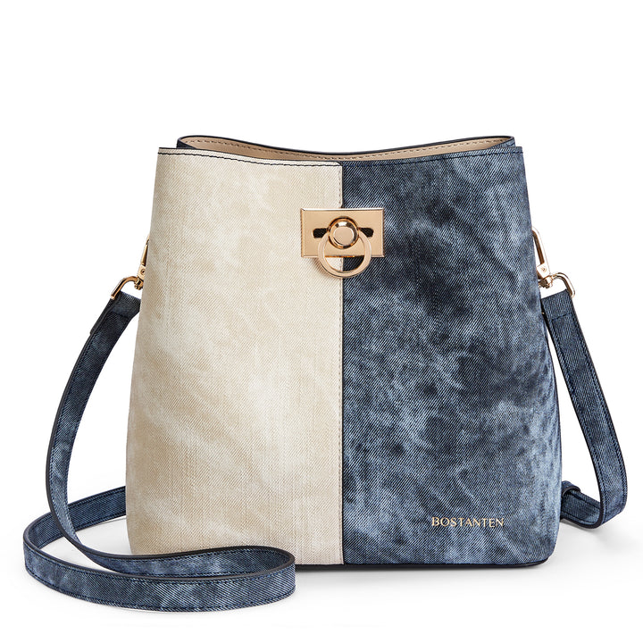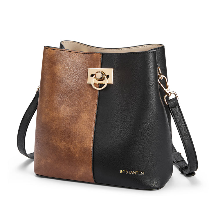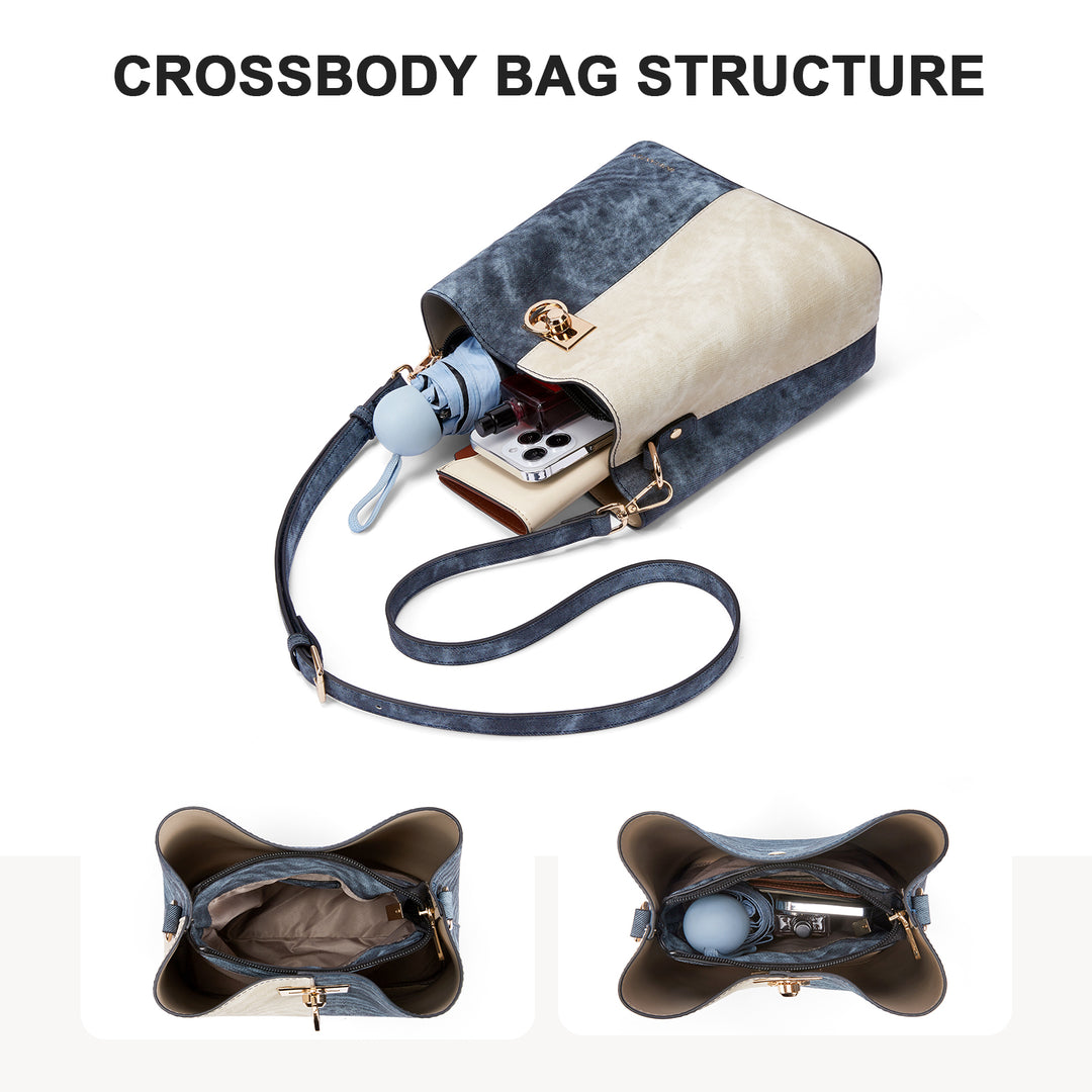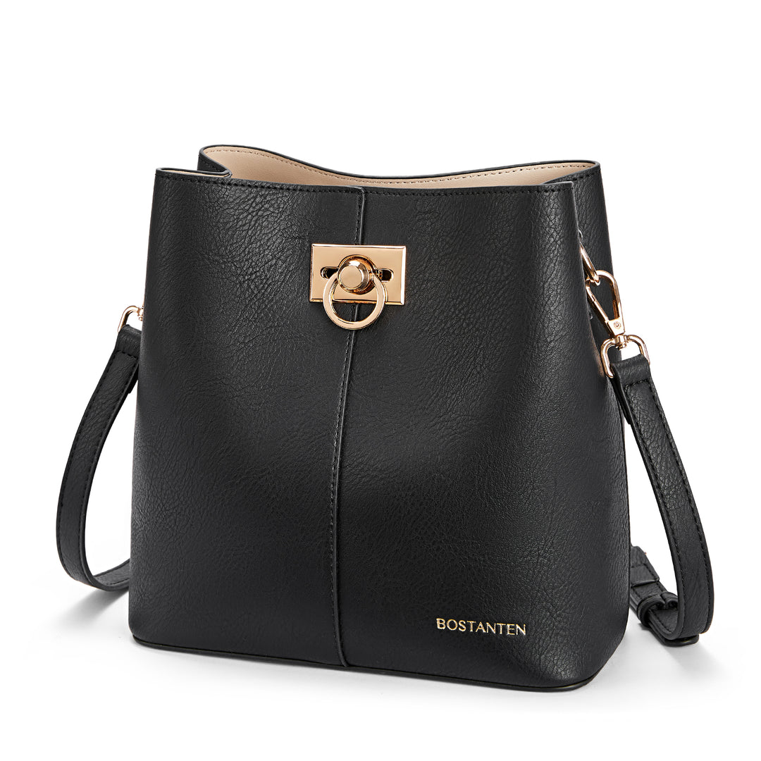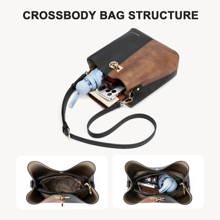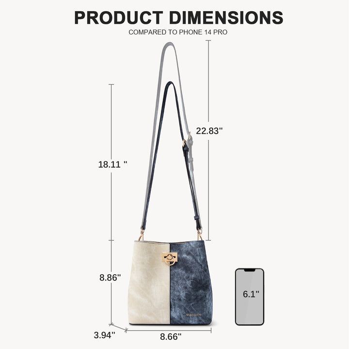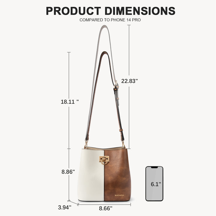 The stylish bucket bag features three secure compartments, including a zippered middle, twist-lock front, and magnetic snap back, for easy organization. The adjustable strap allows for both casual and formal wear, while its compact design efficiently holds your essentials. Perfect for daily use, work, or shopping, it complements any outfit with ease.