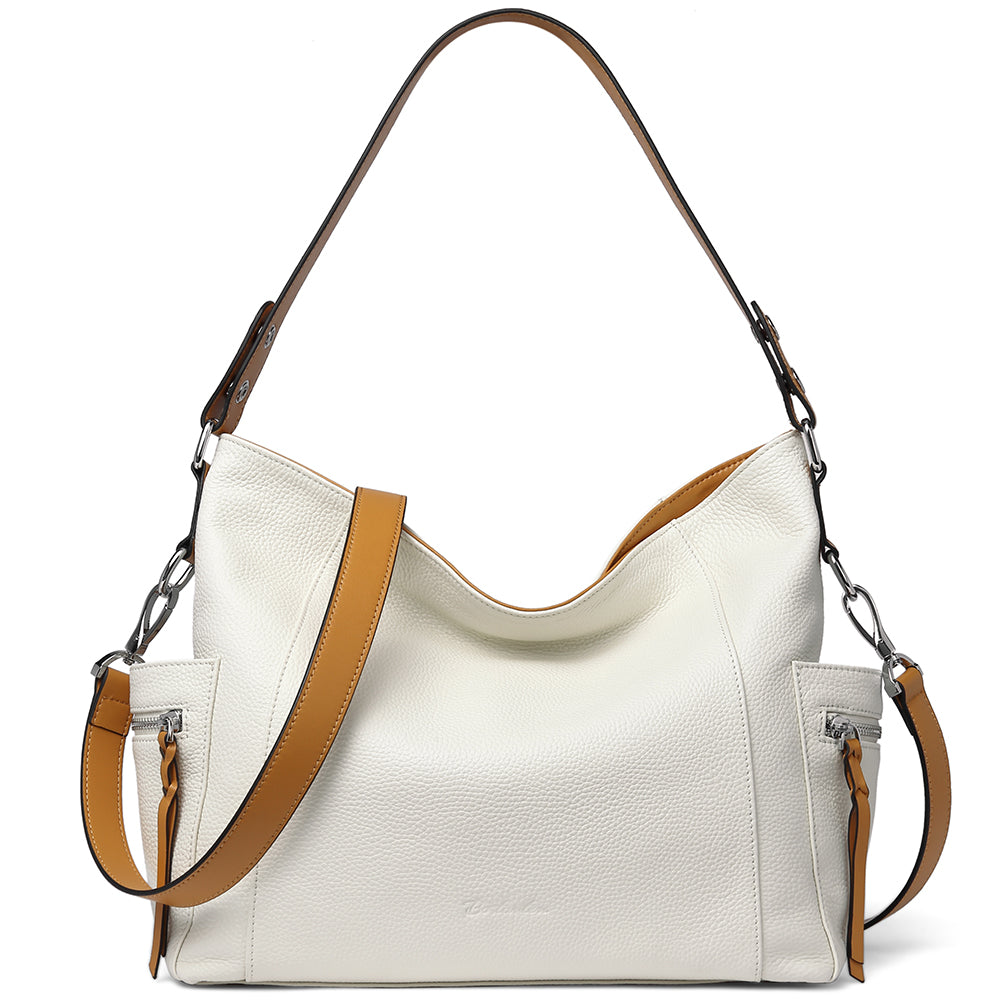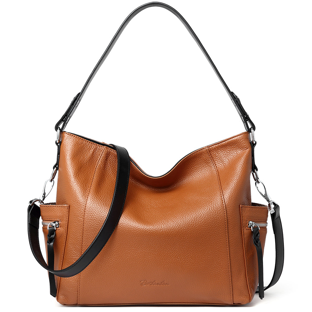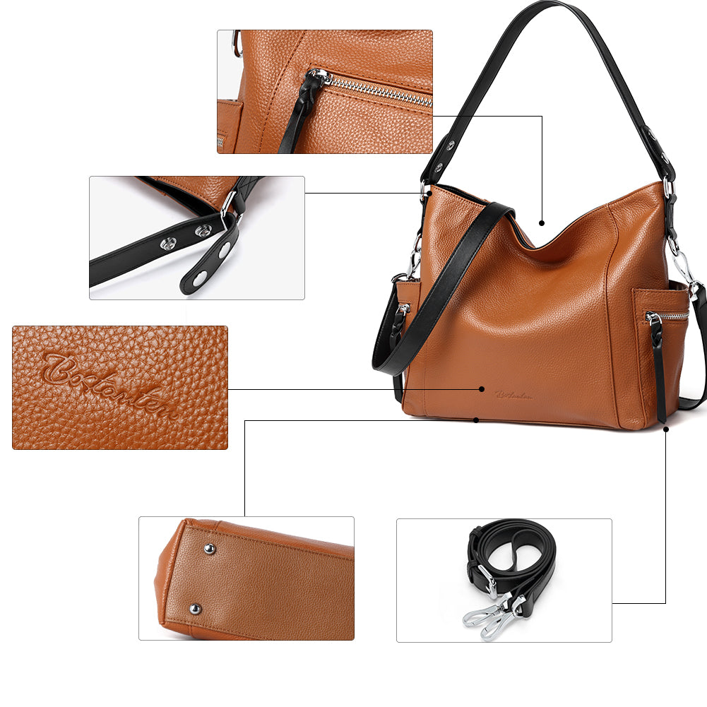 BOSTANTEN Women Leather Convertible Hobo Purse With Side Zipper Pocket