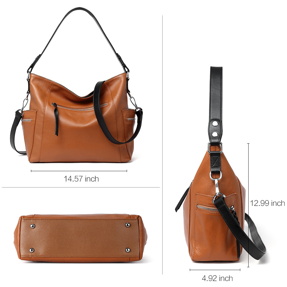 High Quality -- The hobo handbag is made of genuine cow leather by professional artisans.The brown durable fabric lining with custom silver hardware that make the handbag more luxury, generous and elegant.