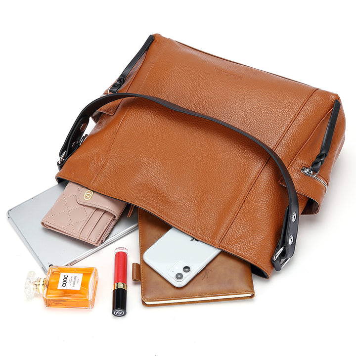 I m really enjoying my new handbag it took me a while to find just what I wanted and this is it. I a habit of overstuffing my handbags this one fits everything perfectly and it’s not too large, and it’s leather so it looks great. Also bought a wallet love that too.