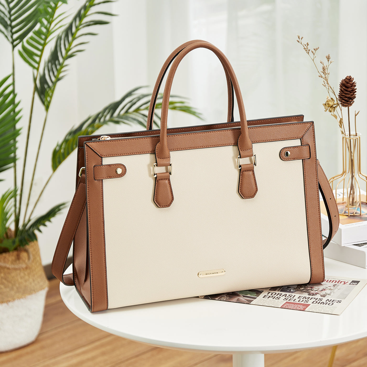 BOSTANTEN Laptop Bag for Women 15.6 inch Leather Briefcase Computer Handbag Stylish Work Tote