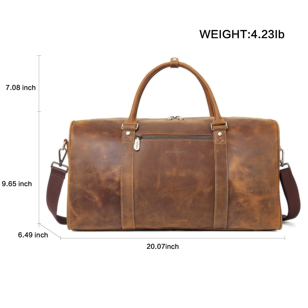 • Size Info -- The dimension of travel bag is 20.07(L)*6.49(W)*9.65(H) inches.Handle drop is 7.08", the weight is 4.23LB.The adjustable long shoulder strap is 29.92"- 51.18",taking pressure off your shoulders with soft shoulder pad.