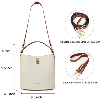 • Dimensions: Handbags size is 9.5" (L) x 6.5" (W) x 9.5" (H), Turn lock snap easy to open quickly. Top handle strap height is 4.0 inch, Matching one removable leather strap that long enough to over the shoulder and length range from 36.0” - 42.3” inch. Perfectly be used as a tote bag, shoulder bag, handbag, hobo bag.