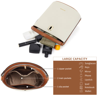 • Pockets Structure: Exquisite bucket design with spacious interior main compartment. Inside 1 zipper pocket & 1 slip pockets in wall. Make your stuff well organized in right place, practical storage could hold items, such as wallets, lipstick, phone, books, etc