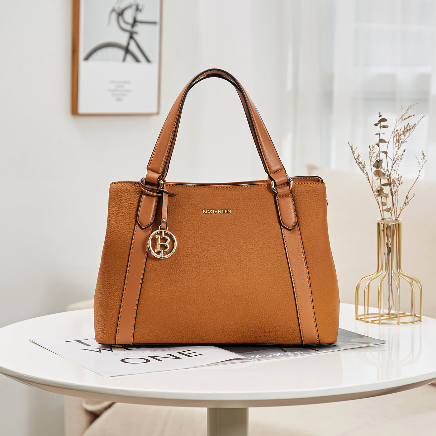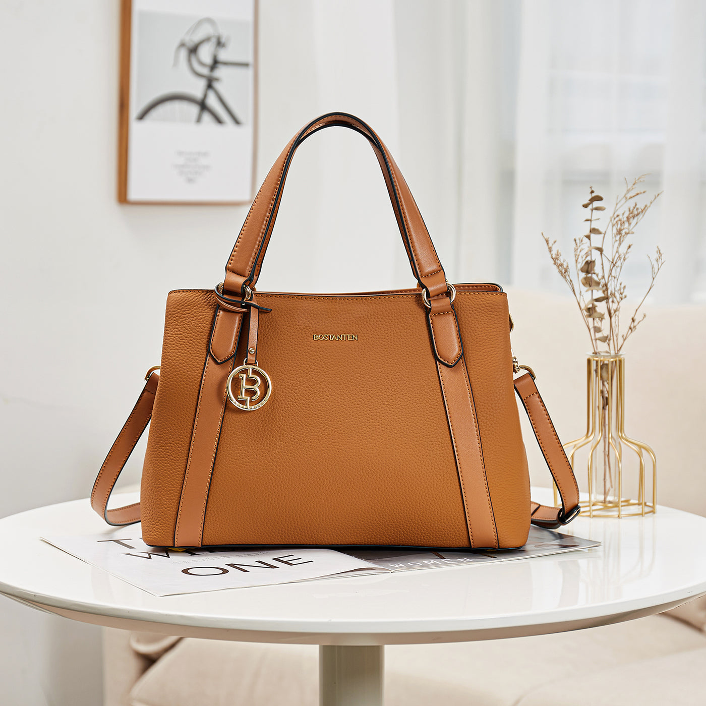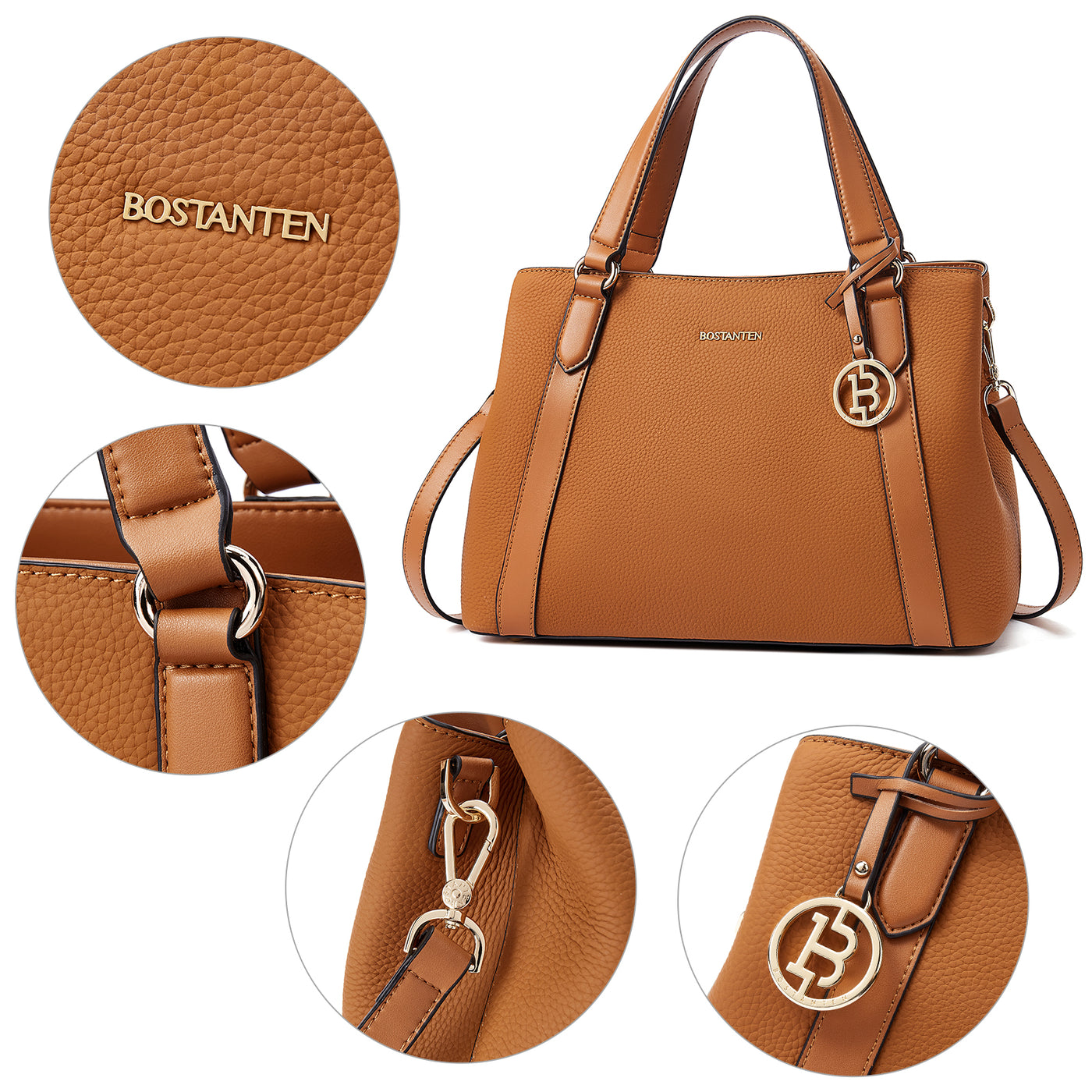 BOSTANTEN Leather Handbags for Women Designer Satchel Purses Top Handle Shoulder Crossbody Bag with Triple Compartment
