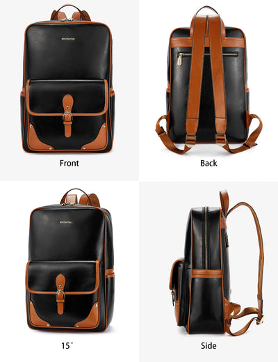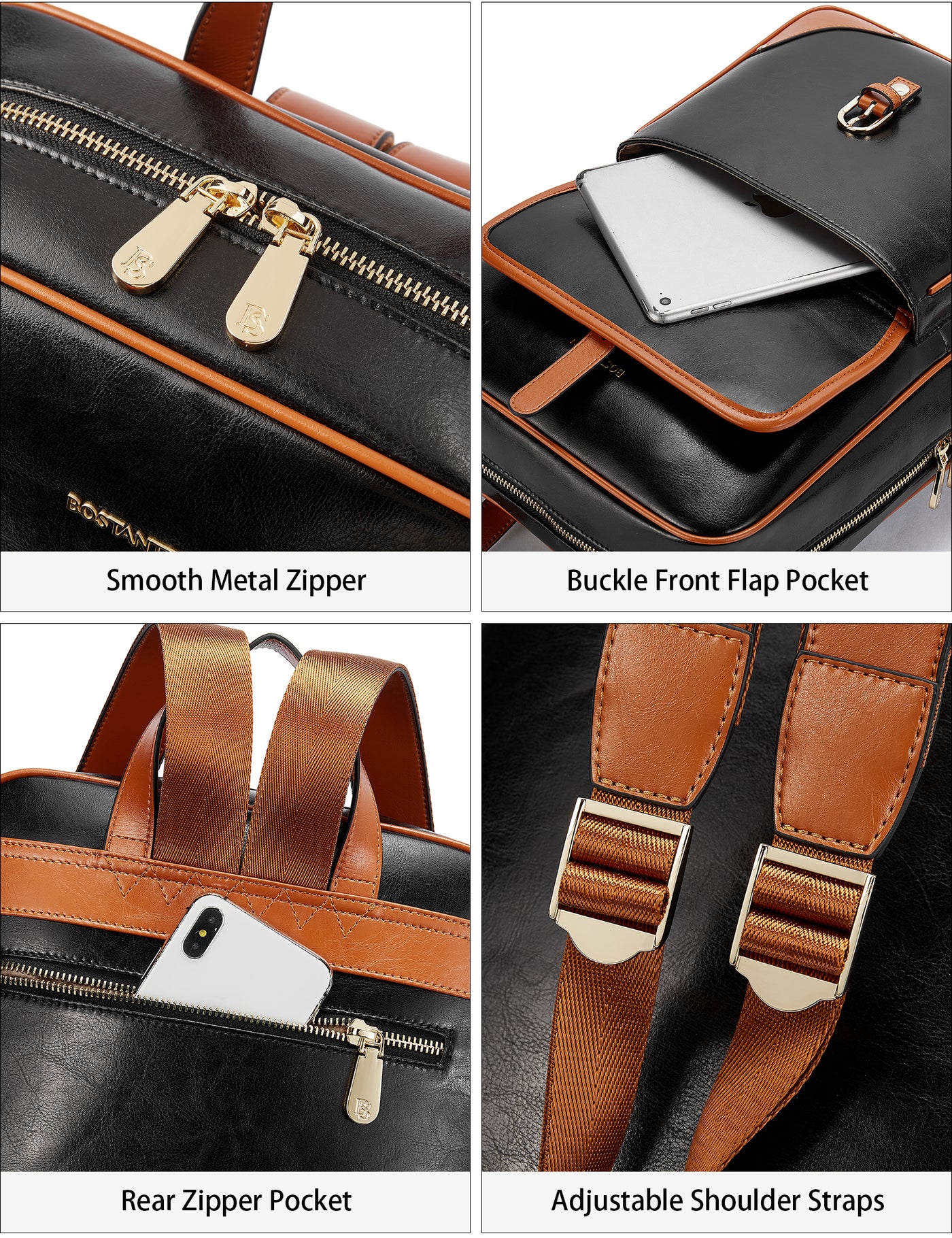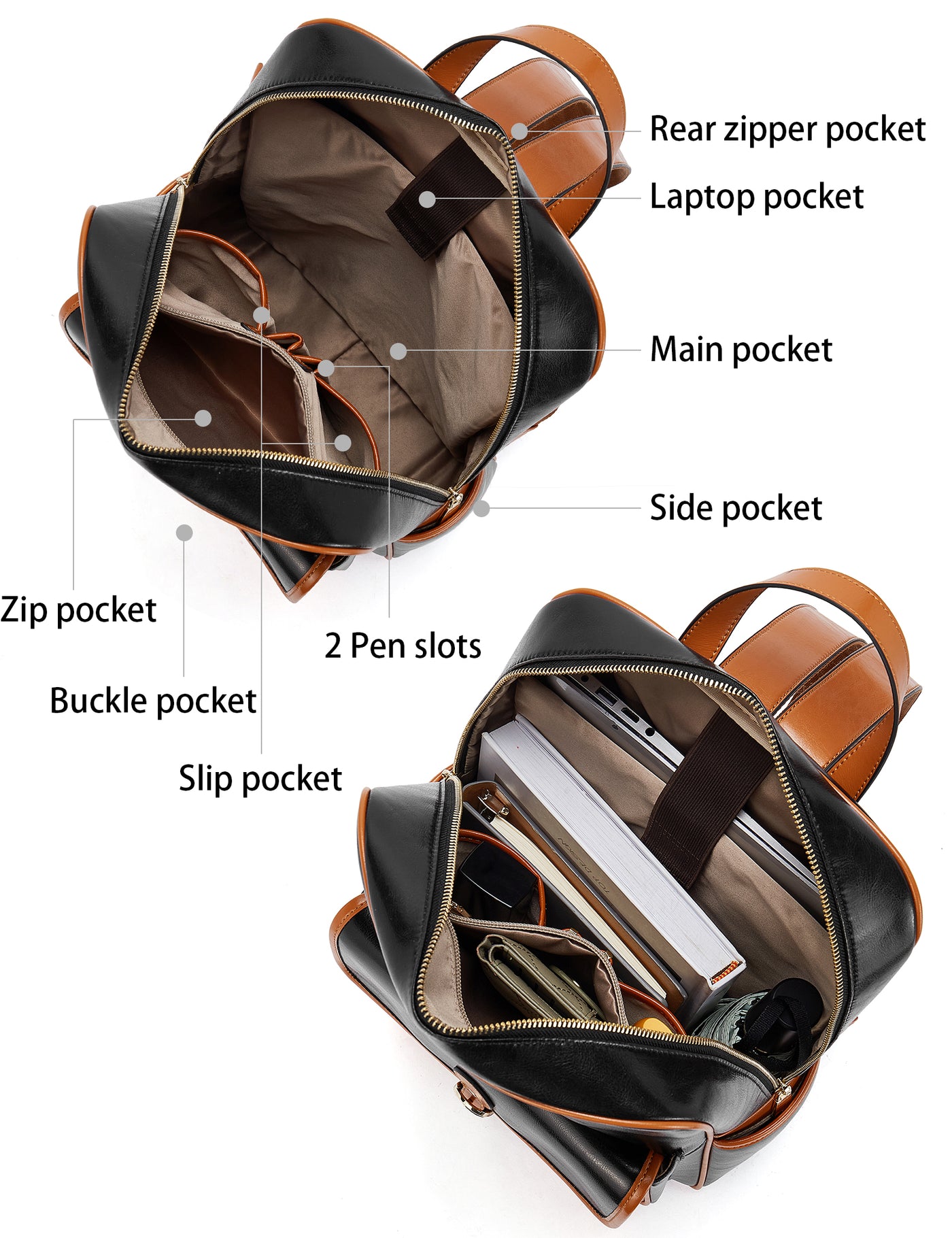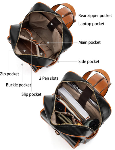 - ❖100% GENUINE LEATHER: The leather backpack is made of high-quality genuine cowhide leather material and fabric lining, which is fashionable and durable. The professional design makes this leather backpack purse for women look vintage and elegant. U-zip opening to the main compartment with padded 15.6’‘ laptop pocket and accordion division for files, it is convenient to get your devices.