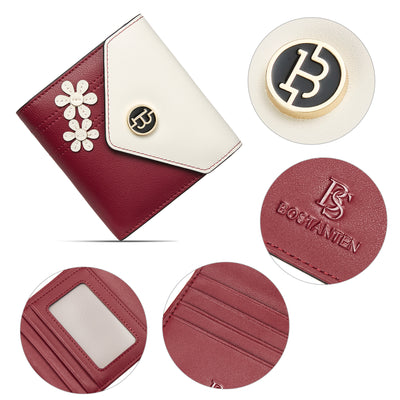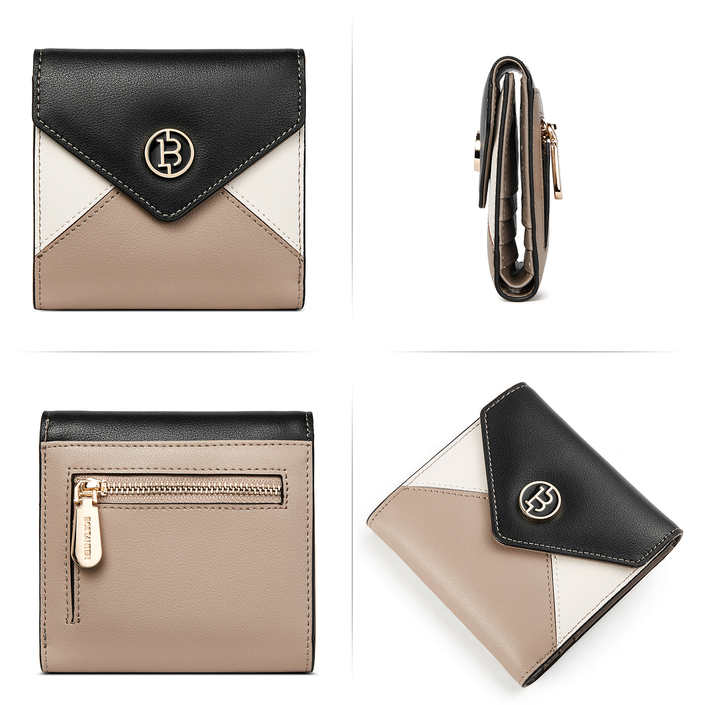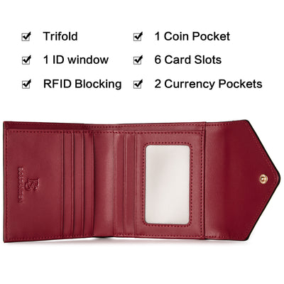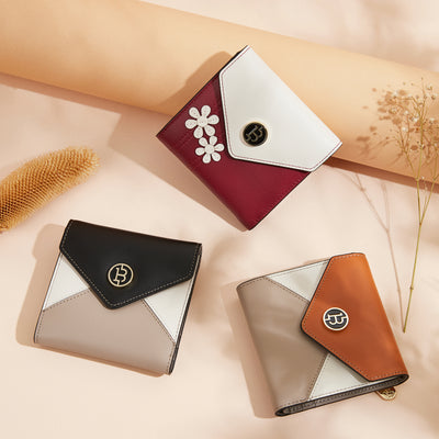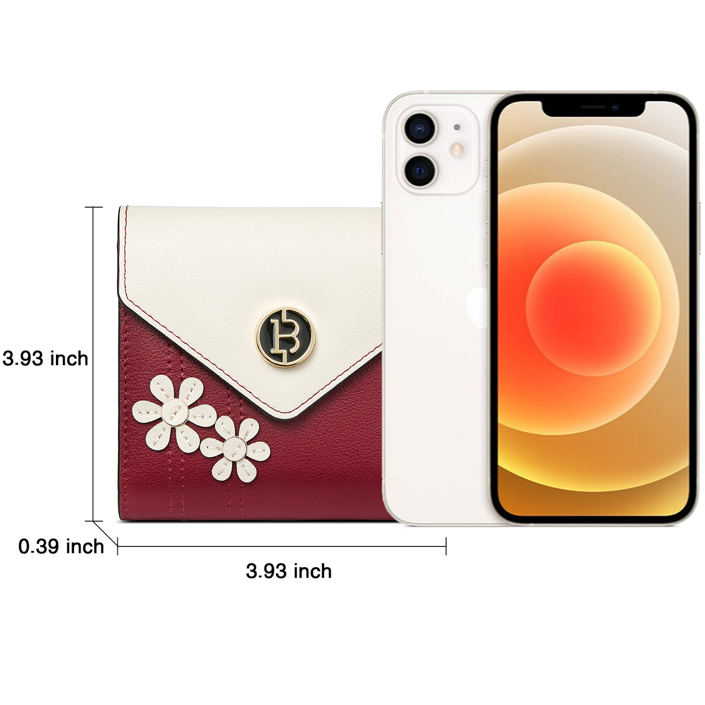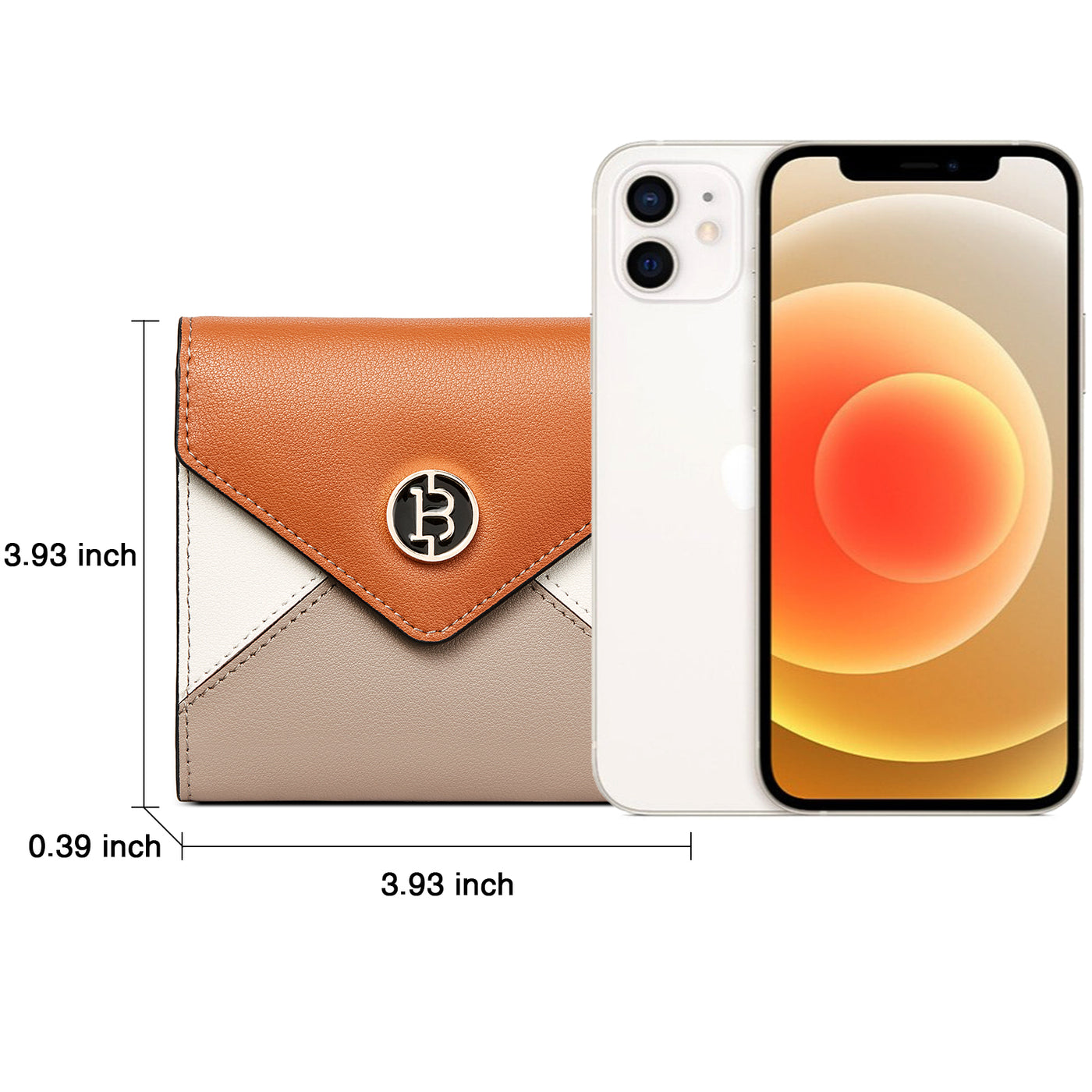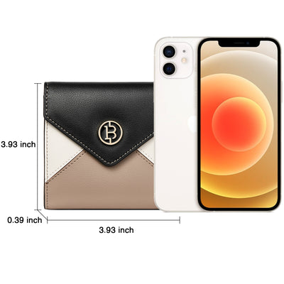 • Genuine Leather - Made from high-quality leather, this women leather wallets is small enough to slip into a small bag or pocket yet spacious enough to carry all the essentials. With a envelope flap and color contrasting design, this small wallet is stylish and elegant. Button closure designs make it stays closed and flat when stuffed. Best choice for avoiding bulky looking wallets.