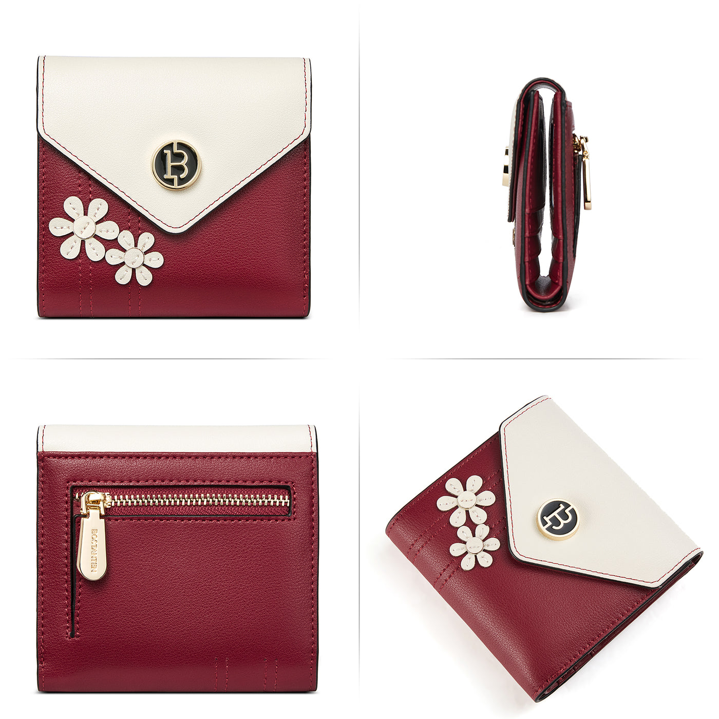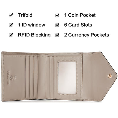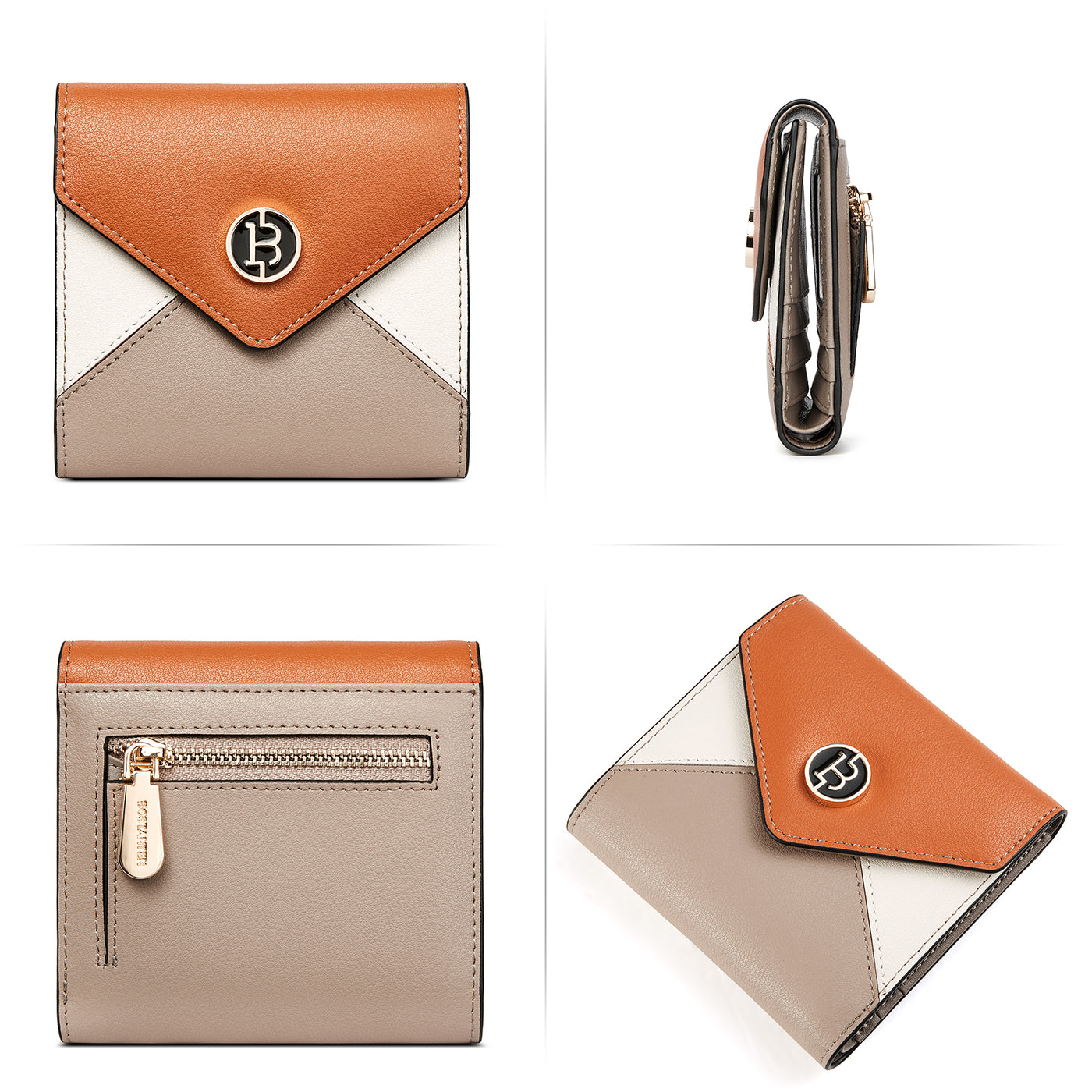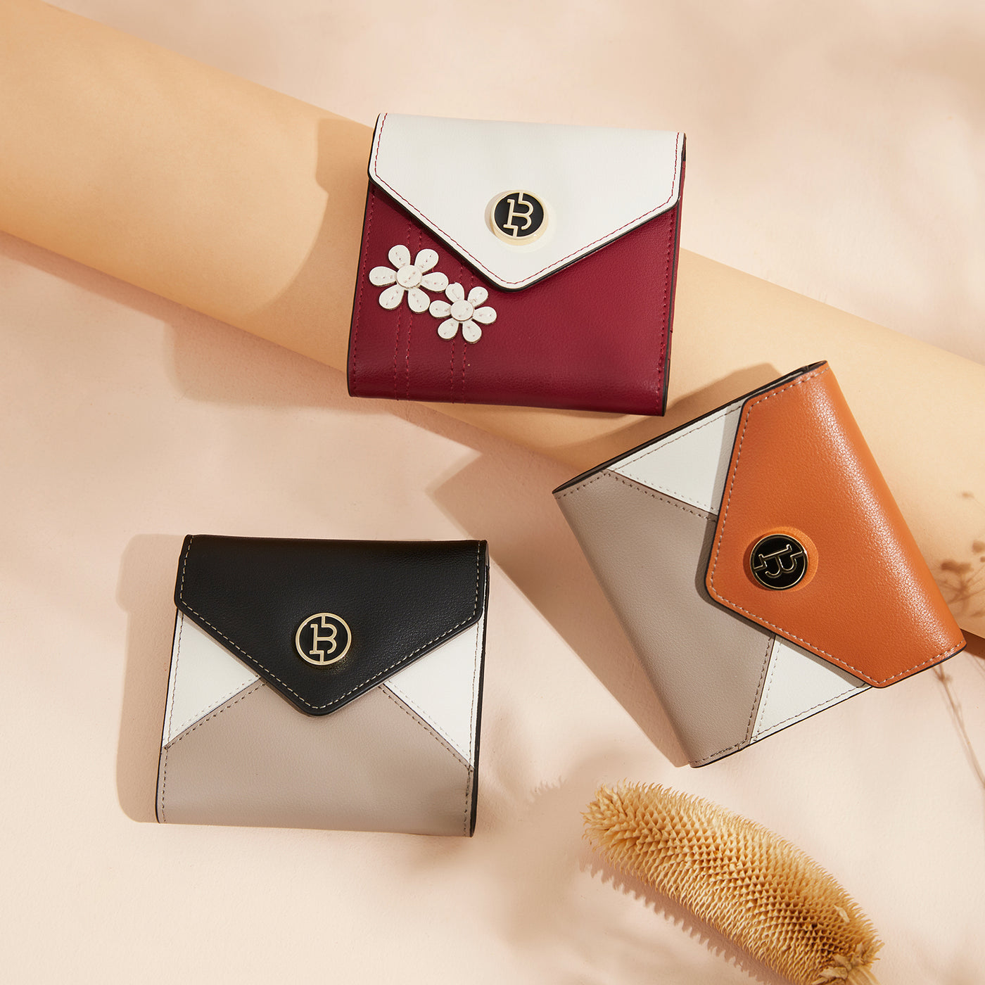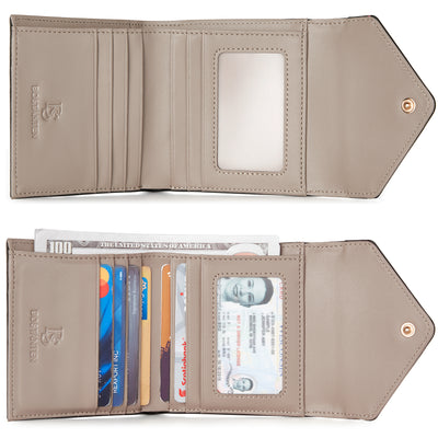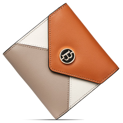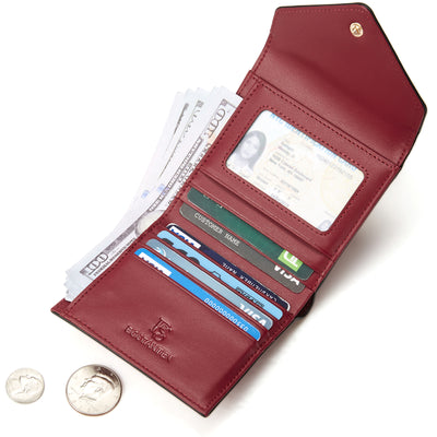 • Genuine Leather - Made from high-quality leather, this women leather wallets is small enough to slip into a small bag or pocket yet spacious enough to carry all the essentials. With a envelope flap and color contrasting design, this small wallet is stylish and elegant. Button closure designs make it stays closed and flat when stuffed. Best choice for avoiding bulky looking wallets.