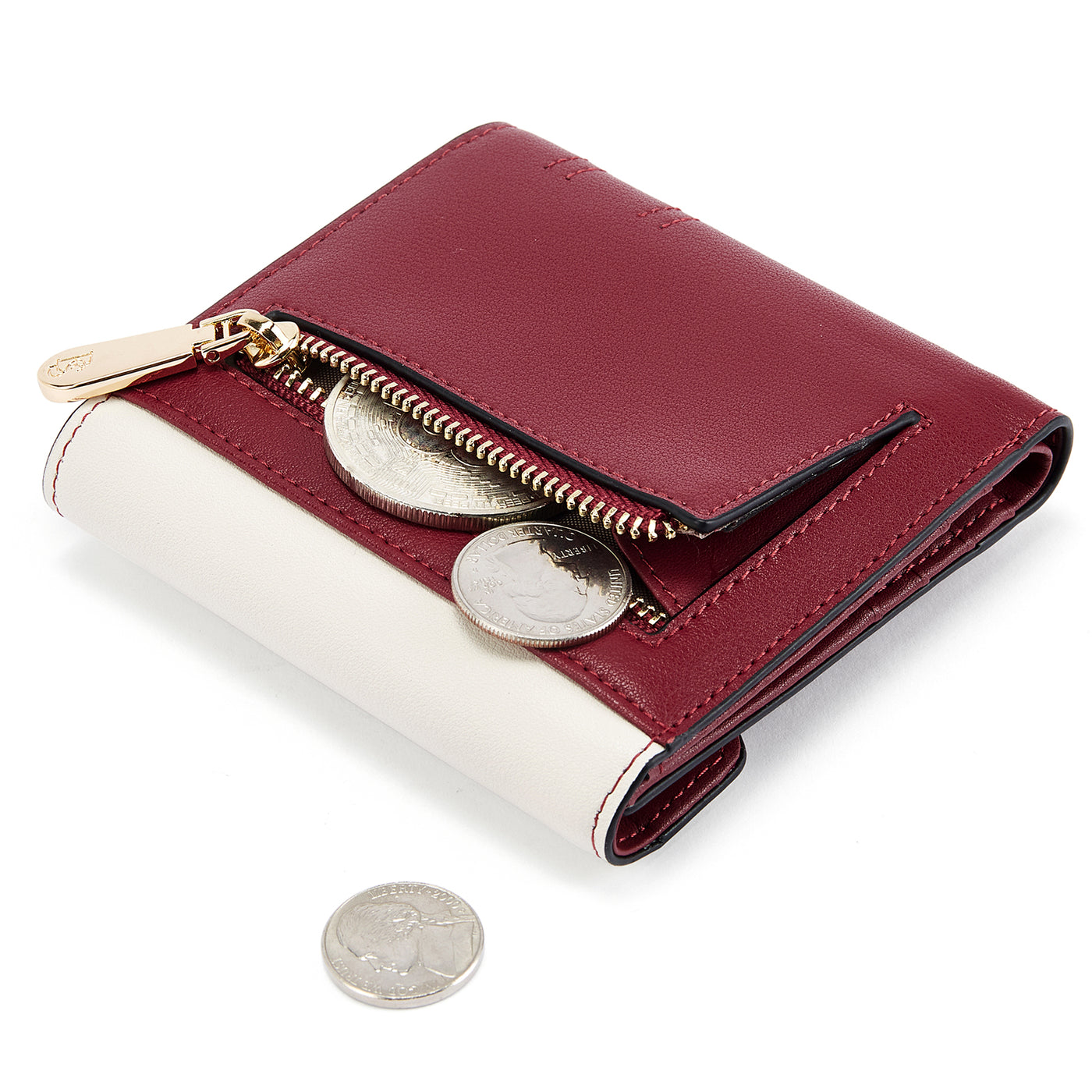 • Multi-functional Design - Measure 3.93" x 3.93" x 0.39" in. this womens wallets will accommodate those of you who carry lots of stuff. It has 6 card slots, two bill compartments, 1 ID window, 1 coin zipper pocket. This ladies wallets is roomy enough for fitting plenty of cards, change and some bills, coins, keep them well organize