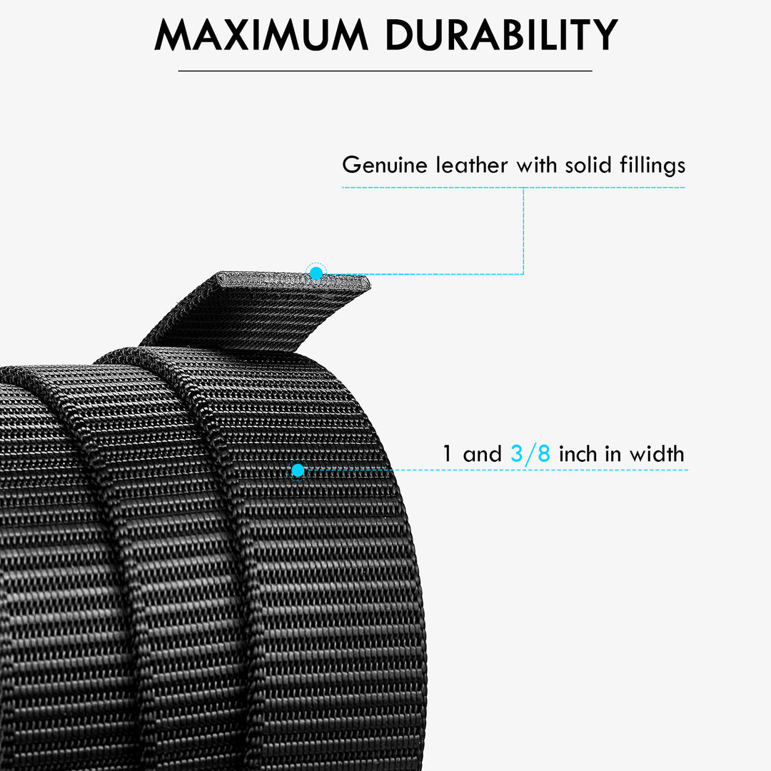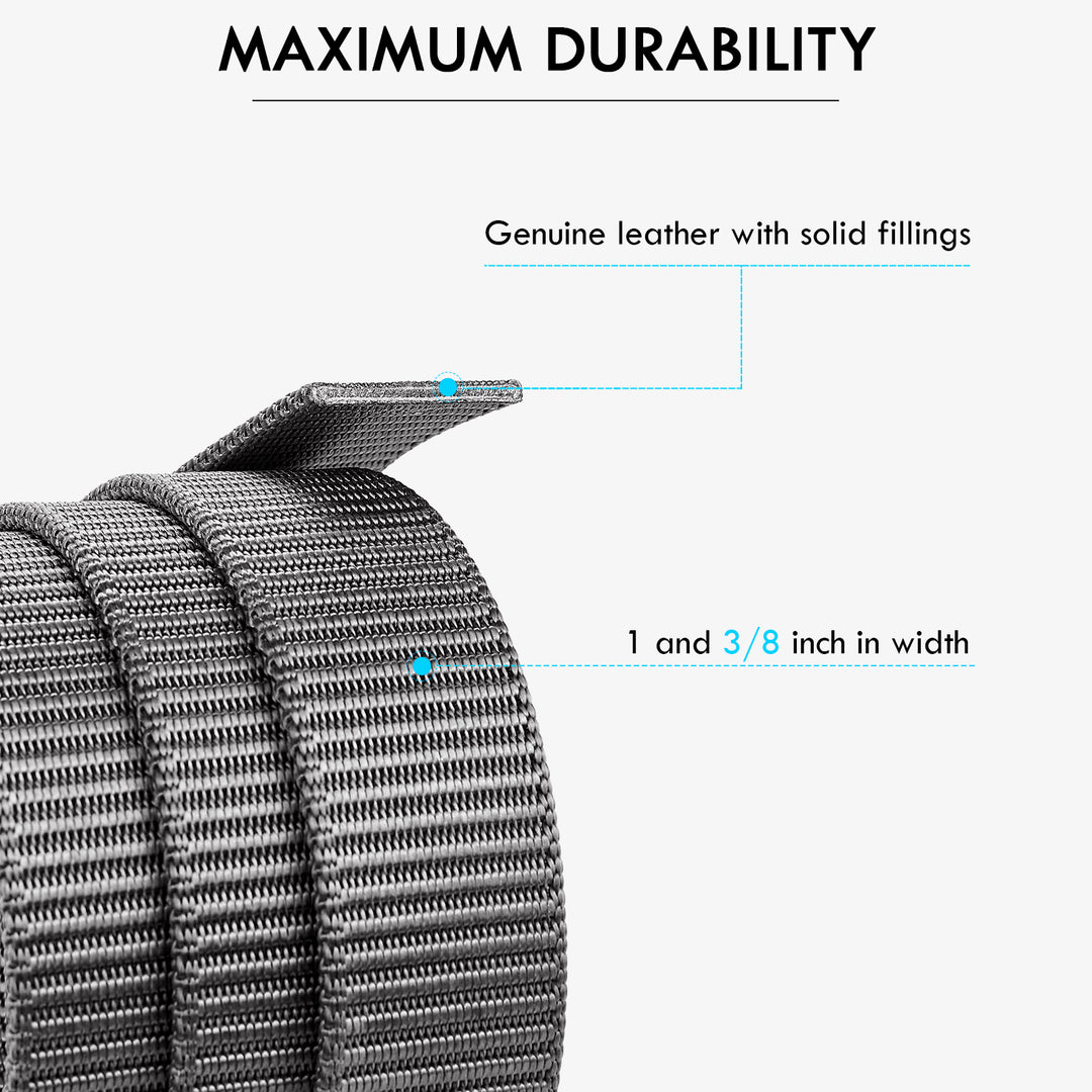 High Quality Design: Well stitched nylon with solid fillings made the belt more comfortable and durable. The buckle is solidly built and good looking. Looks very nice with both casual and business outfits.