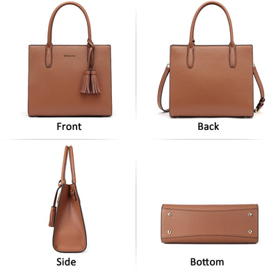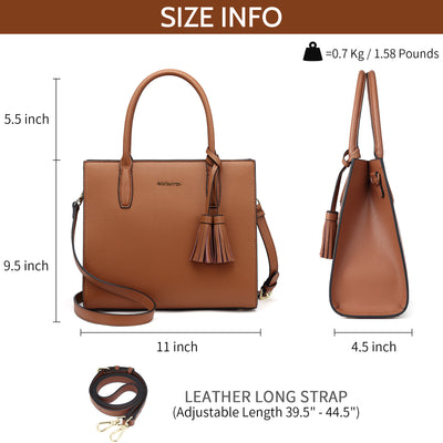 • [ Premium Material ]: This women purses are made of quality genuine leather, Select smooth fabric lining for interior. Setting durable gold metal hardware in handbags. A removable tassel for decorations. Lightweight feature with feminine slim finish to the handbags shape, Pretty tote purses to be your leisure choice on-the-go.
