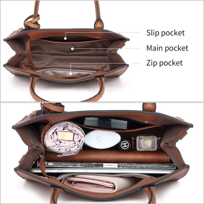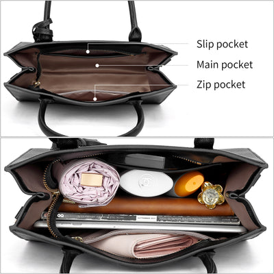 • [ Available Sizes ] : The handbas size approx is 11(Length) * 4.5(Width) * 9.5”(Height). Dual top handle & 1 adjustable long strap( 39.8" - 44.6” strap height drop), Convenient and comfortable to carrying in shoulder, top handle or crossbody style, Practical women purse in your work, daily and travel, etc. As well as matching your various fashion outfit style.