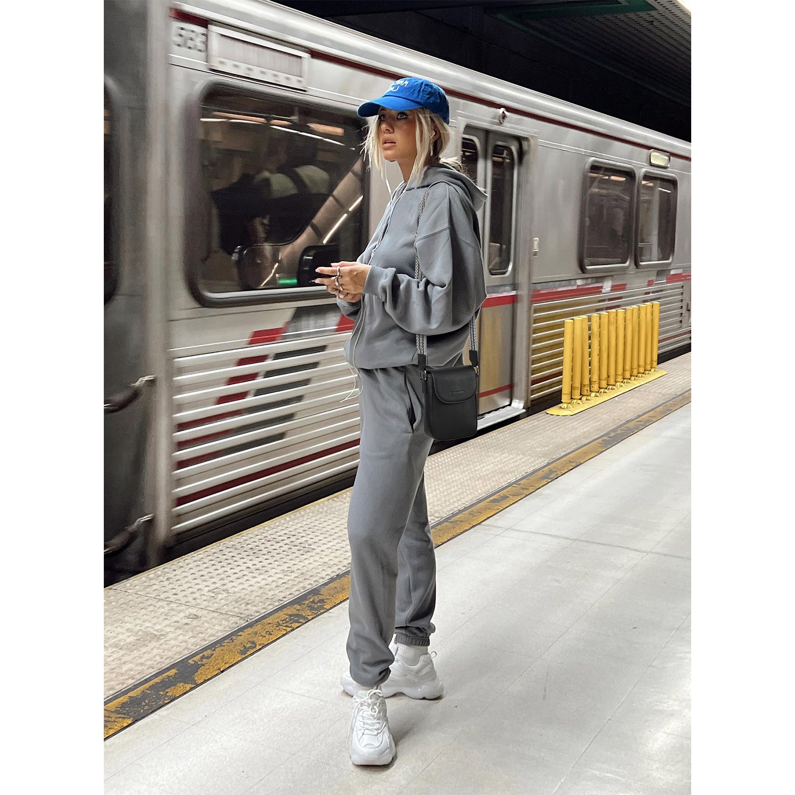 We created this phone crossbody bag to provide a stylish and convenient way to carry essentials hands-free, ensuring easy access and organization for busy lifestyles.