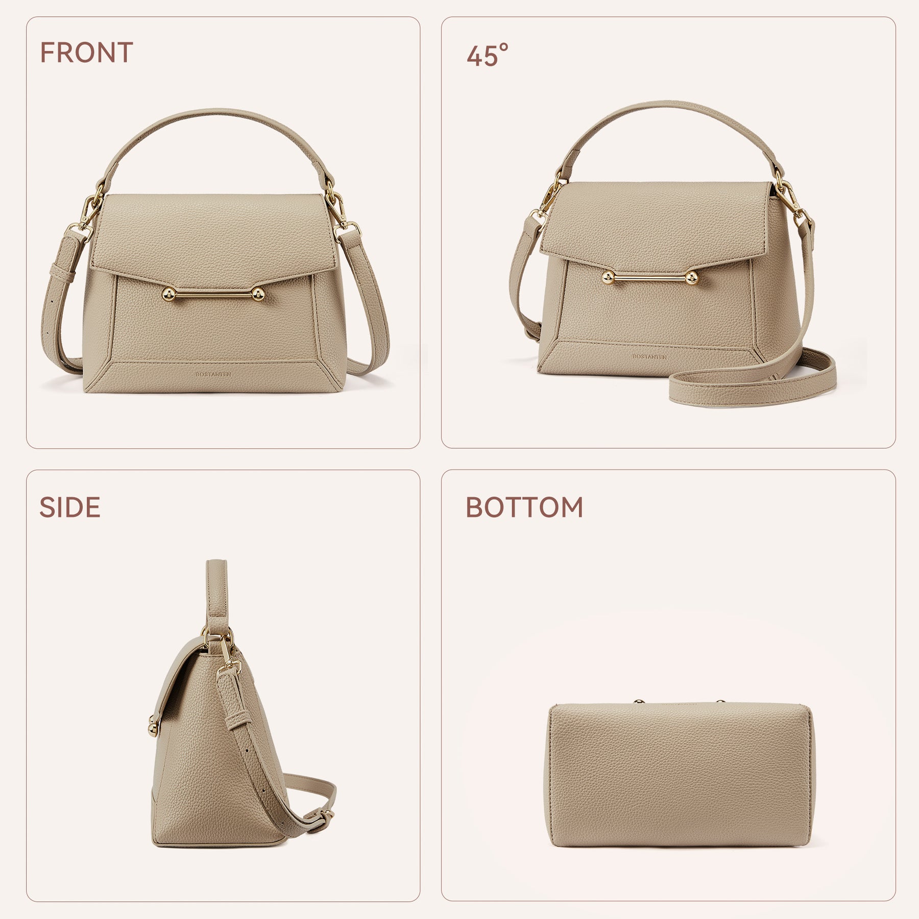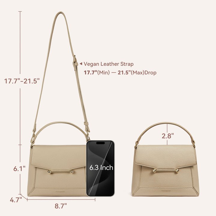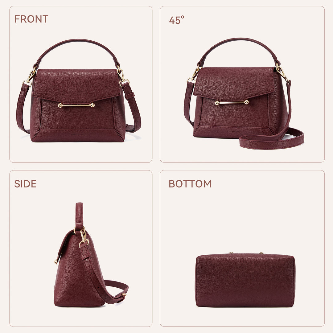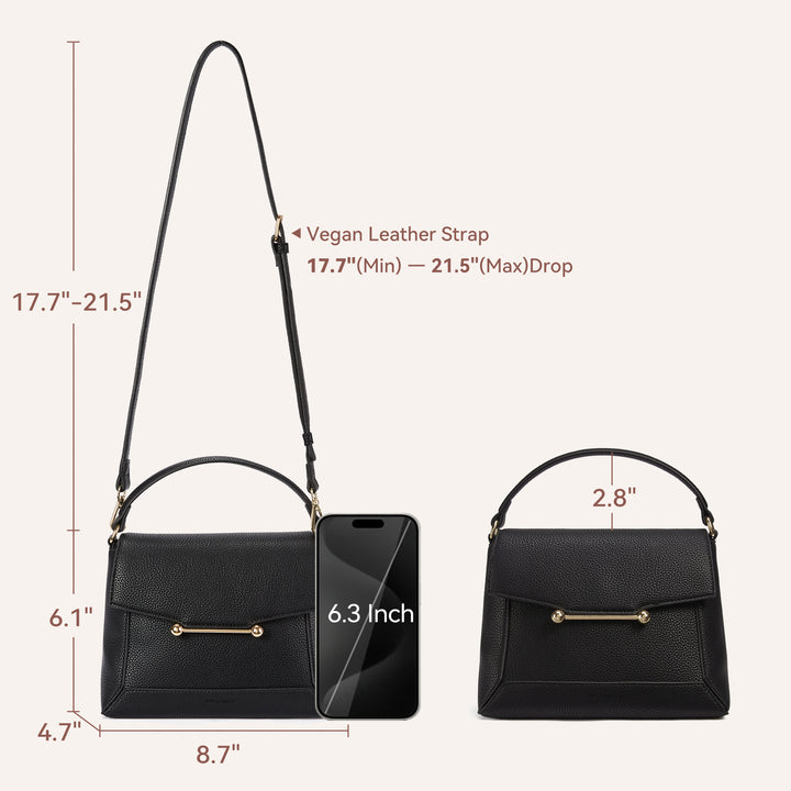 This small crossbody bag features a secure magnetic flap closure to keep your essentials safe and accessible. Crafted from high-quality vegan leather with elegant metal accents, it retains its shape while offering a refined look. The compact size includes a main compartment with an inner pocket—perfect for phone, wallet, and daily items. With a top handle and adjustable strap, it can be worn as a crossbody, shoulder bag, or handbag. A stylish and thoughtful gift for any occasion.