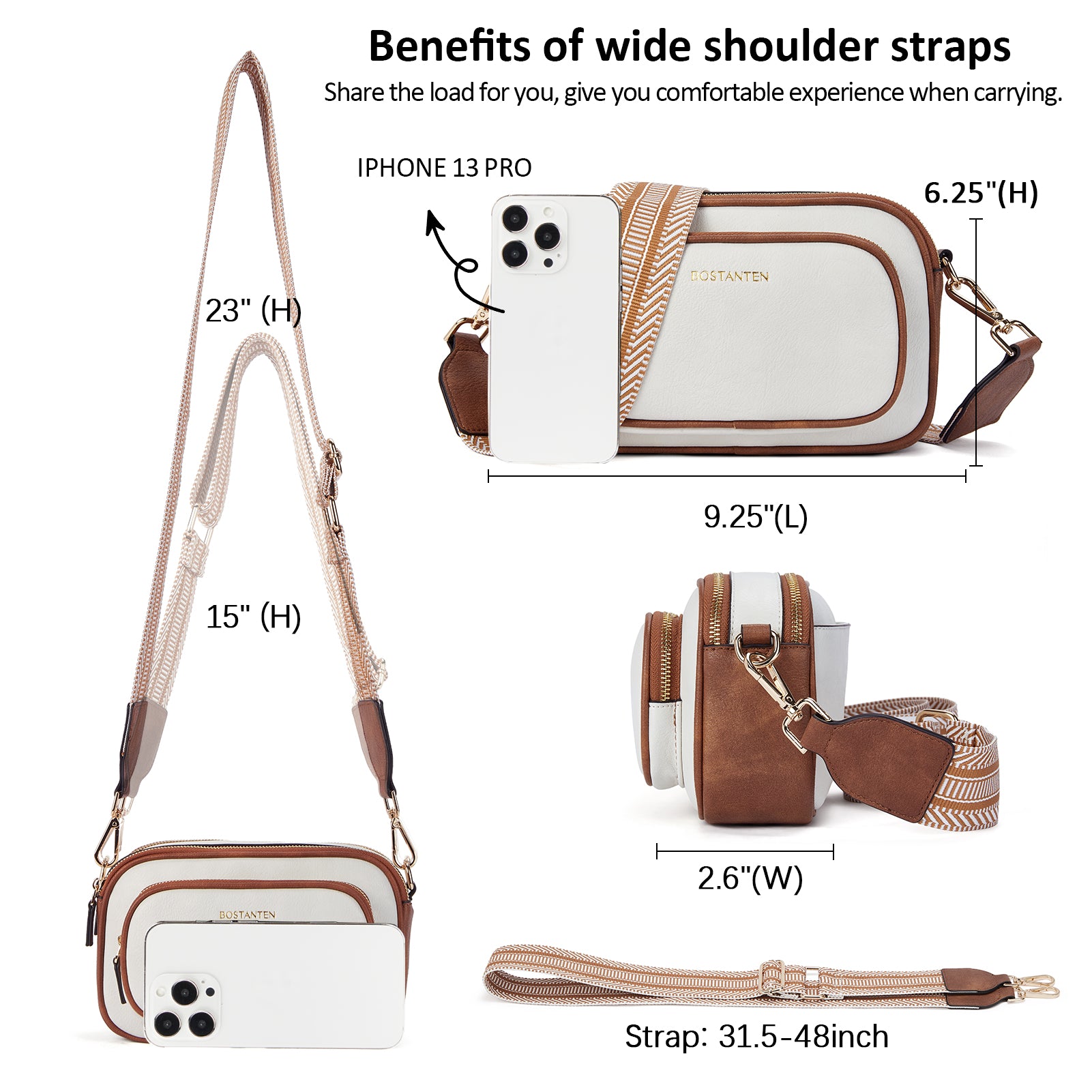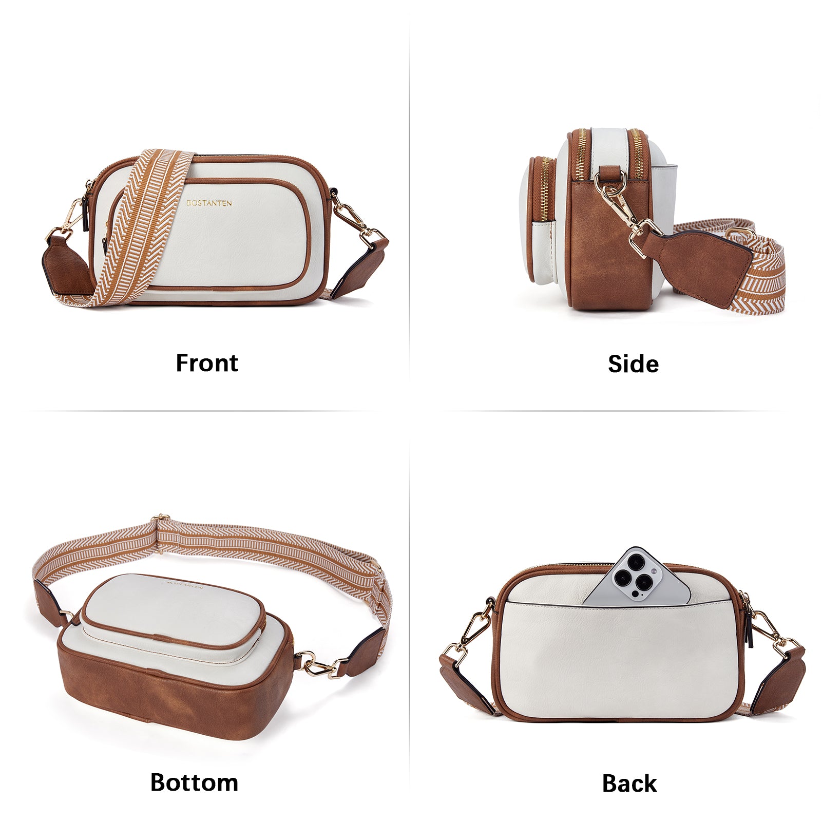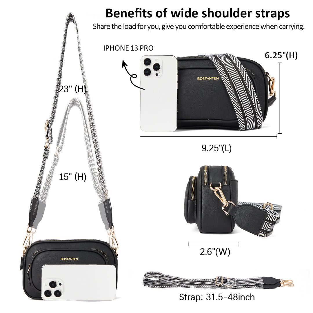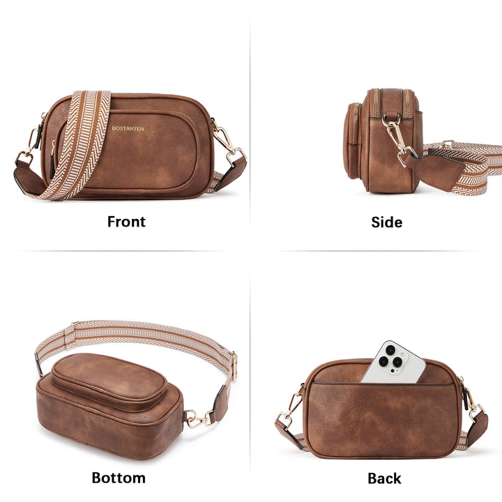 Multi Pockets: The crossbody bag with 4 zipper pockets + 1 inner zipper pocket. (Include: Front 1 zip pocket + Back 1 zip pocket). Whether on the front or the back, there are dedicated cell phone pockets for easy access. And there is zipper protection, not afraid of falling and theft.