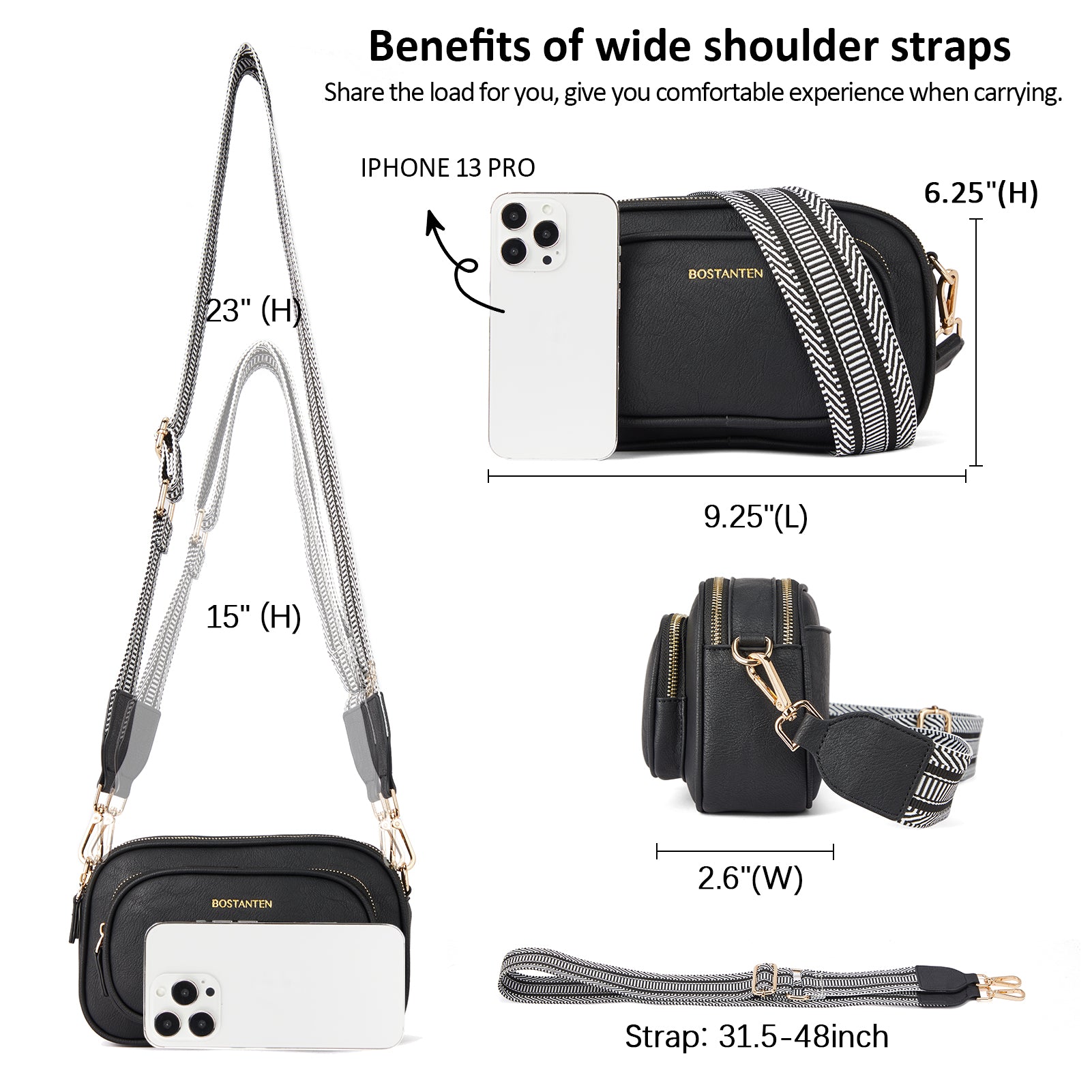 I love the Crossbody. I think the strap it comes with is short You should give the option of short or longer strap when ordering. I wanted to order the longer strap for my black one but freight was $6.99 so I decided not to buy the longer strap.