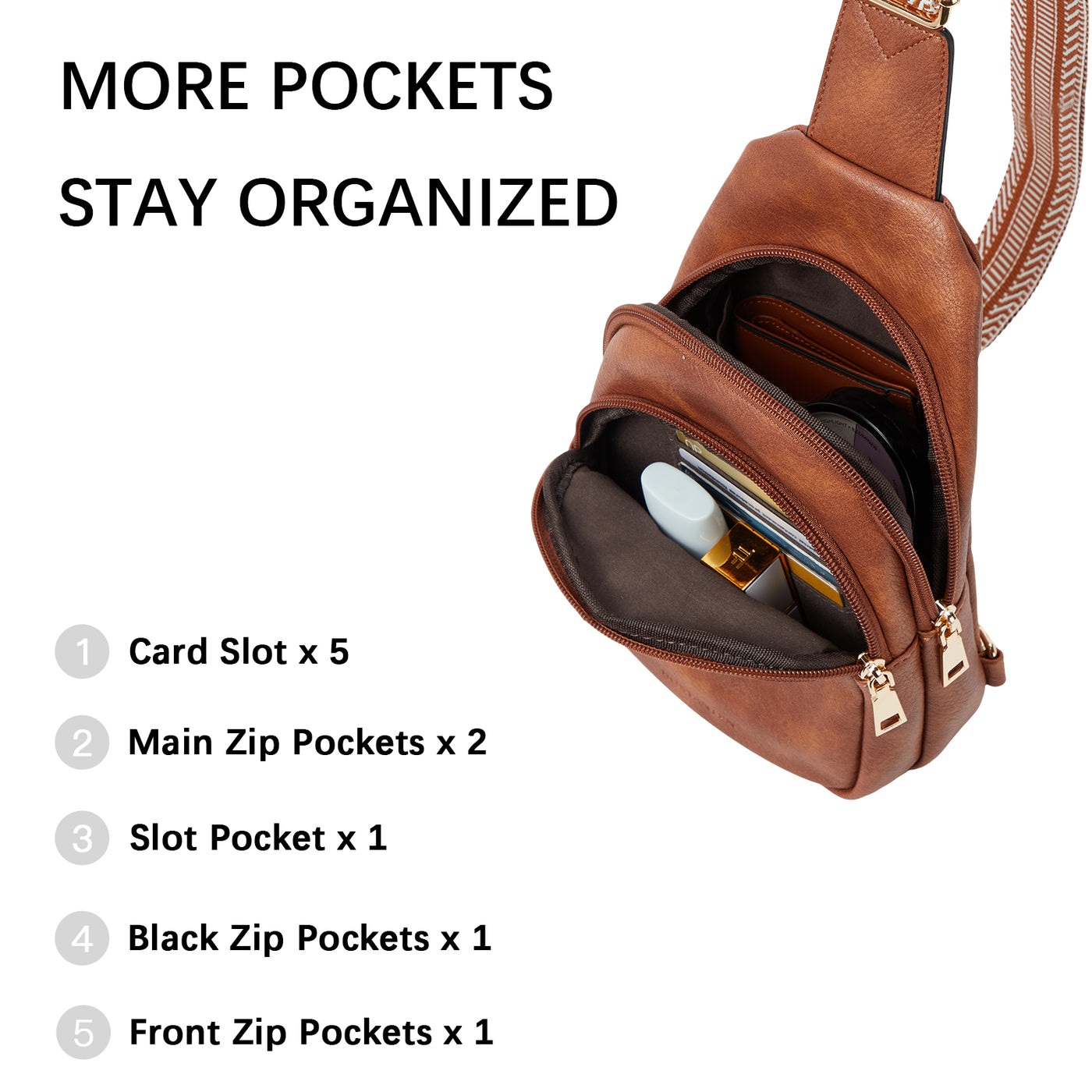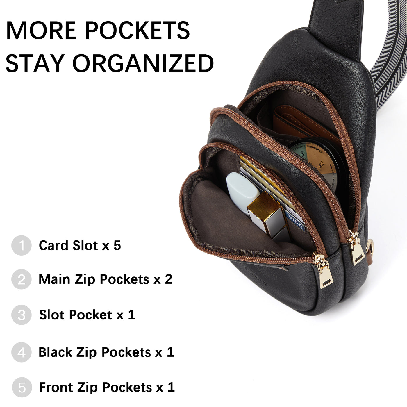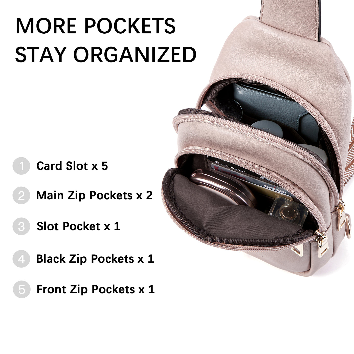 • Multi-pocket Design - The crossbody bags for women have 5 pockets and 5 card slots. Enough space allows you to easily organize personal items, such as mobile phones, wallets, keys, lipsticks, and other small items that need to be carried with you when you go out. 5 card slots allow you to find cards quickly, and everything becomes more orderly, so you can maintain a good mood throughout the day