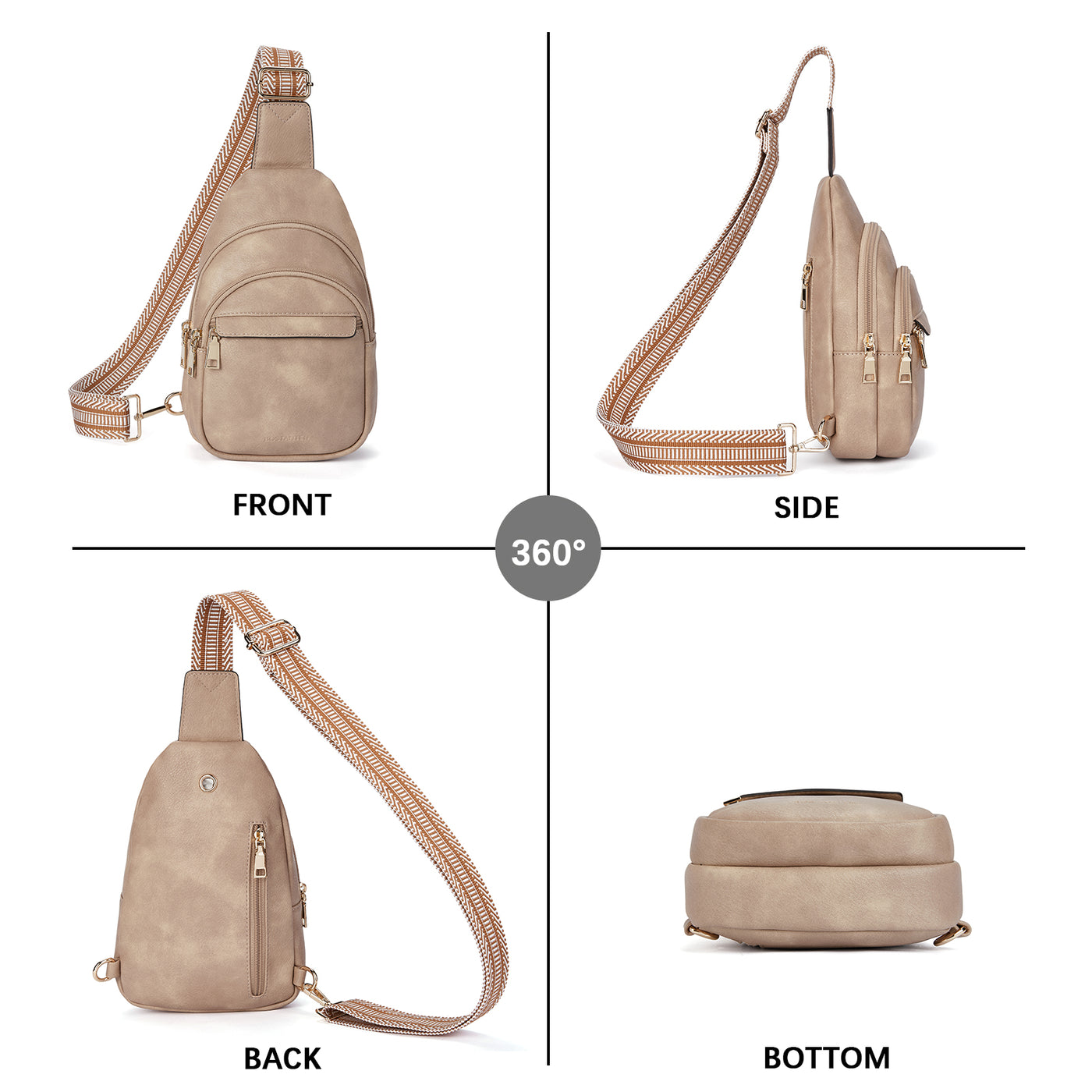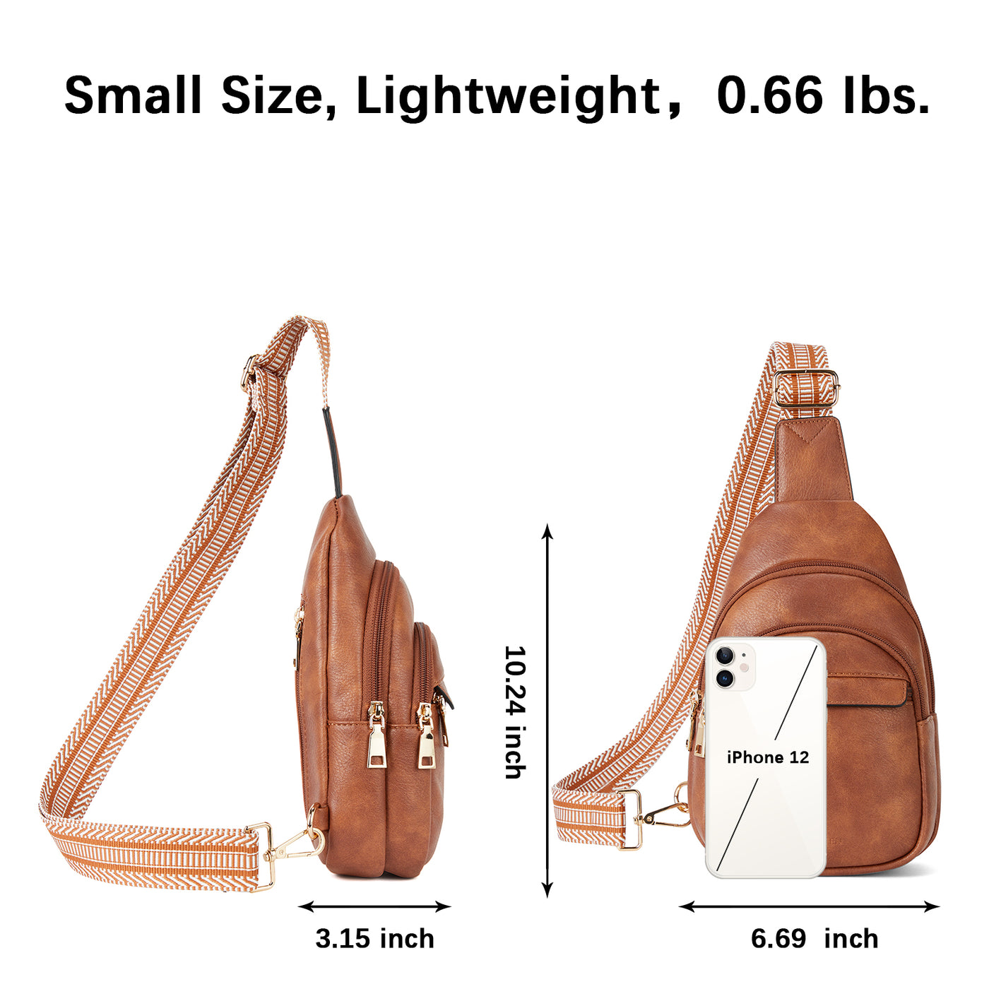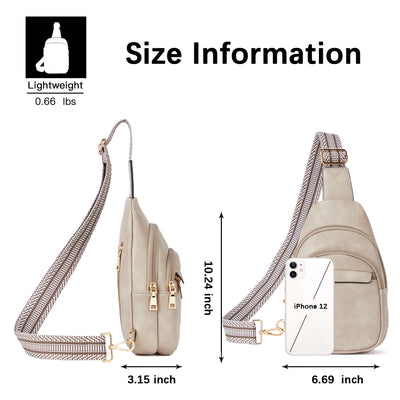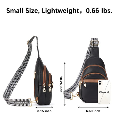 • Perfect Size, Adjustable Strap - The leather sling bag is easy to carry, that size is 3.15" x 6.69" x 10.24", and weighs only 0.66 lbs. The stylish shoulder strap is detachable and can be adjusted left or right, and the length can be adjusted from 25 inches to 48 inches, providing optimal comfort. Its multi-functional design allows you to carry and use it in various ways, whether it’s across the body, over one shoulder, or as a hand-held bag