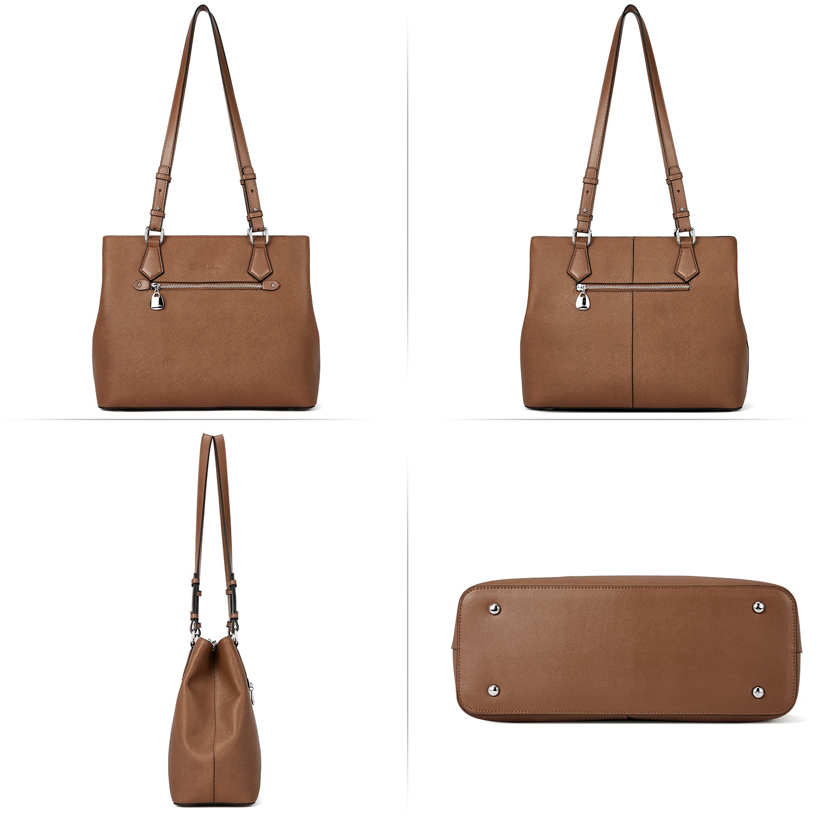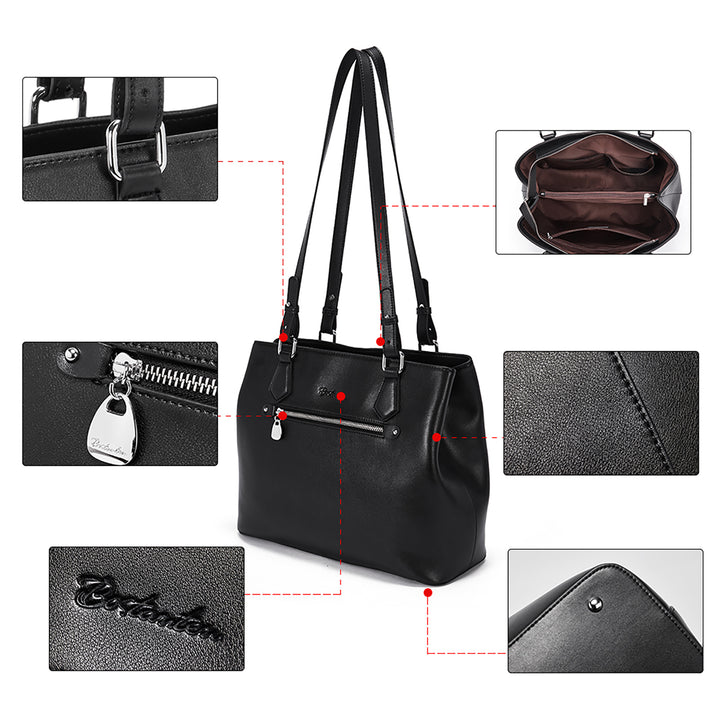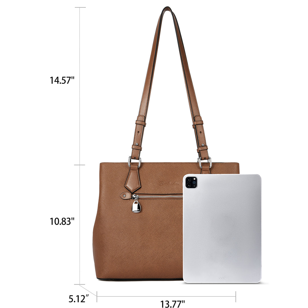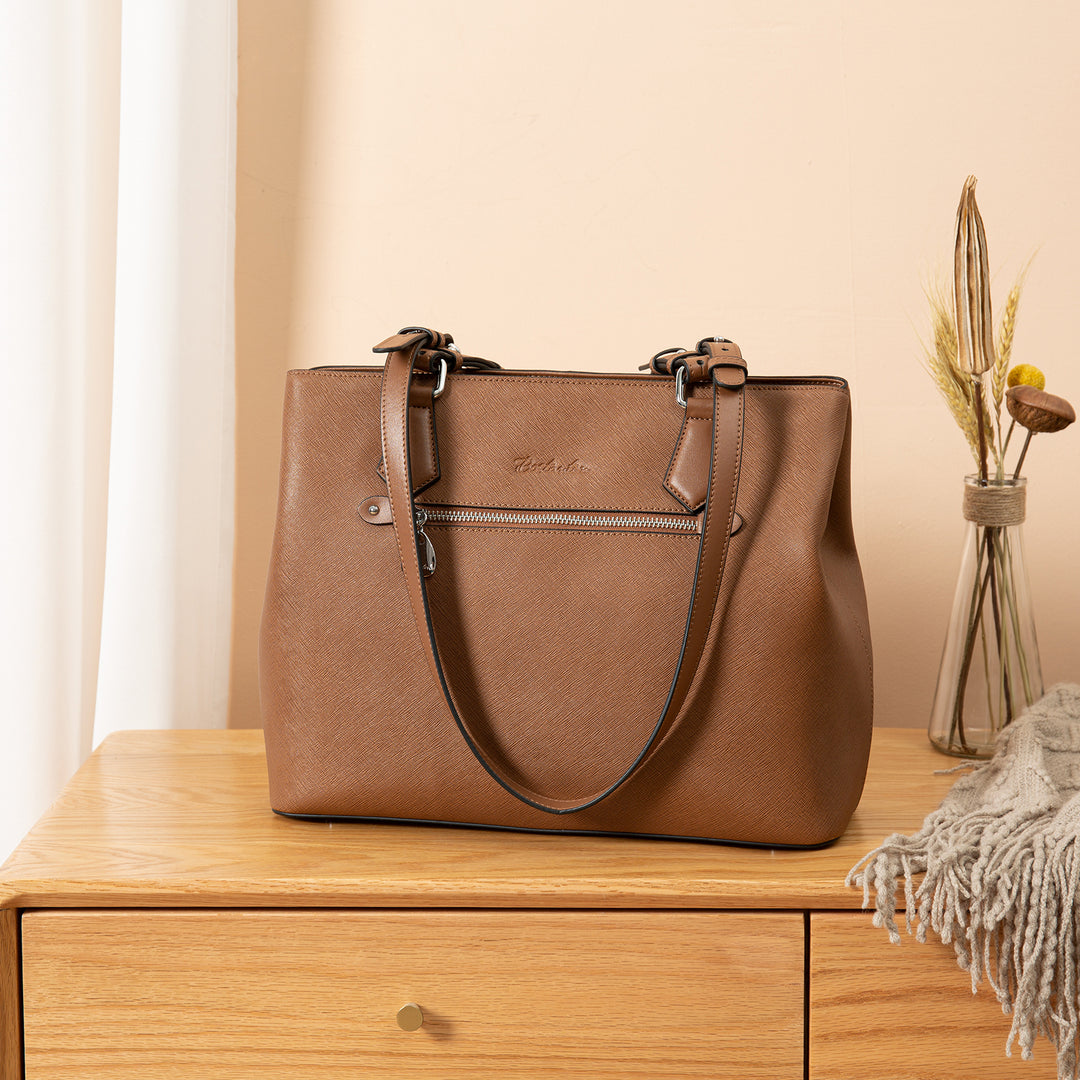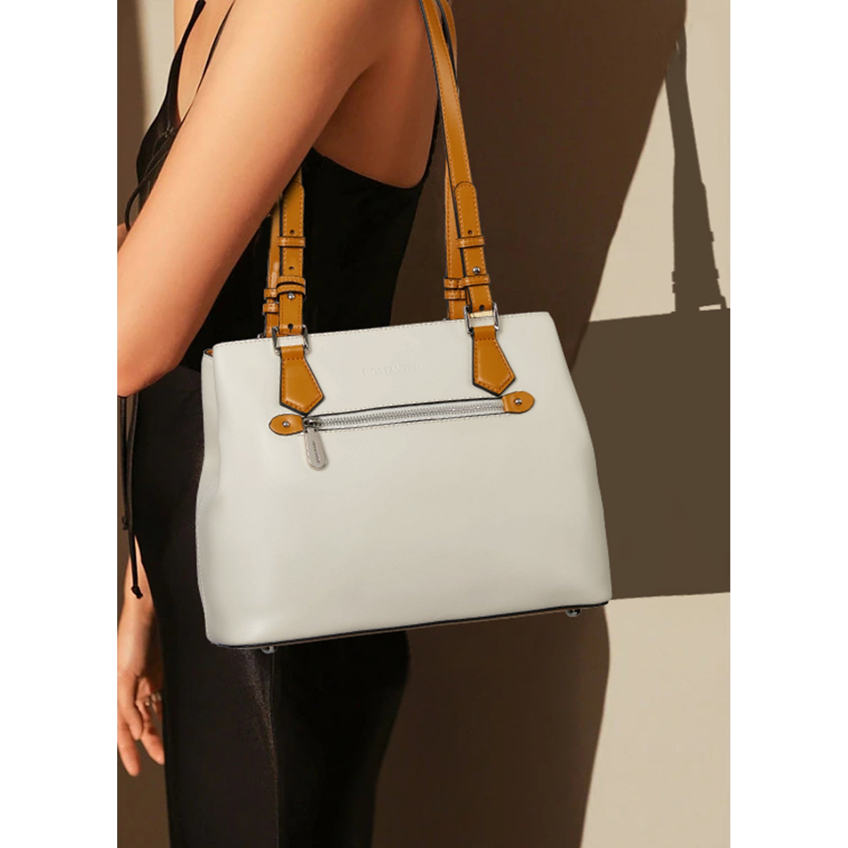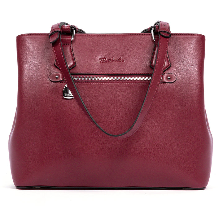 Nevin Structured Leather Shoulder Tote Bag - Front Zipper Pocket