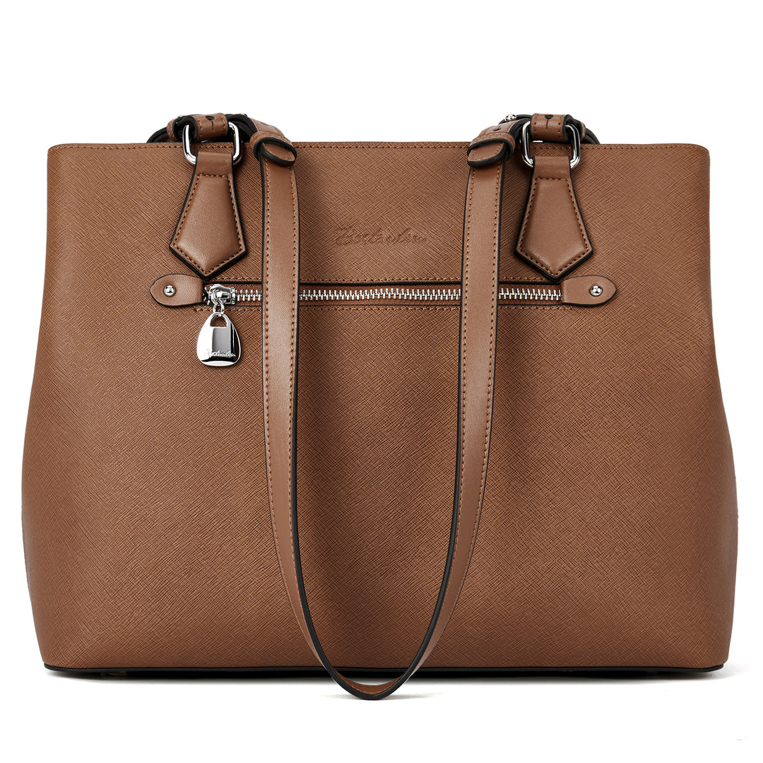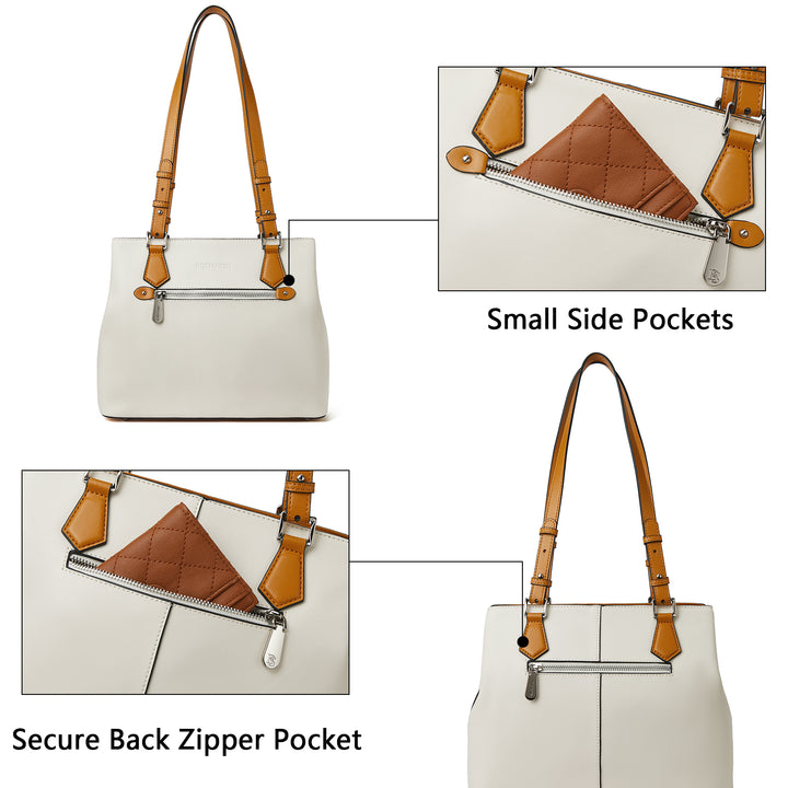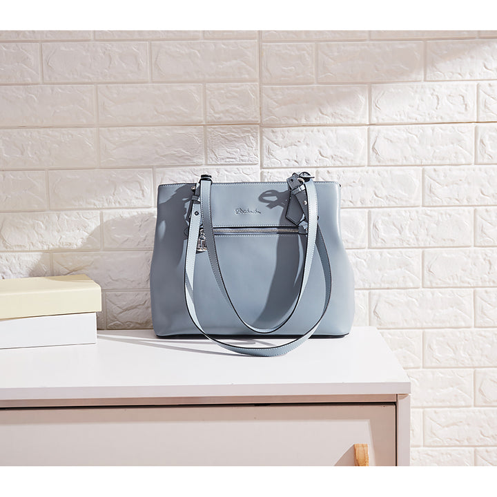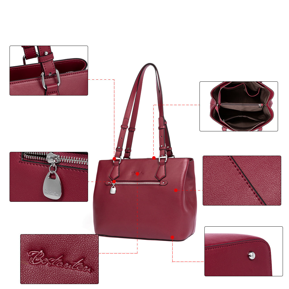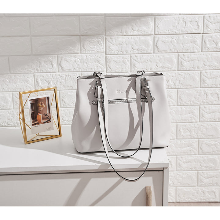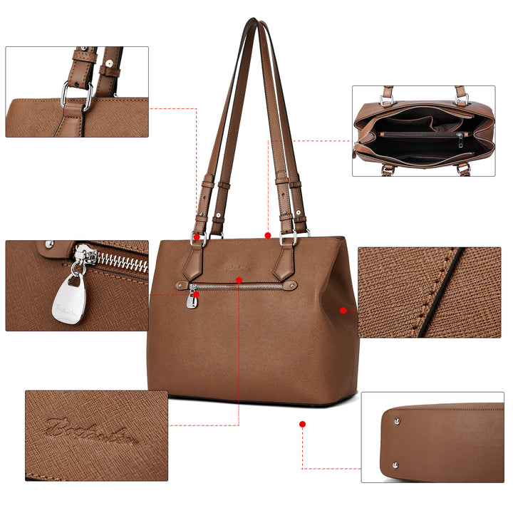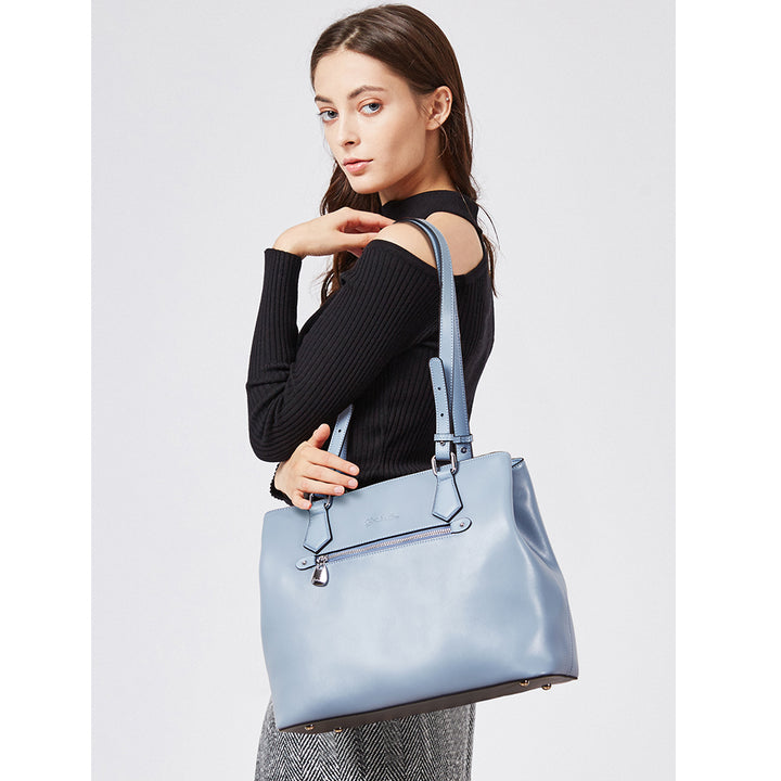 Nevin Structured Leather Shoulder Tote Bag - Front Zipper Pocket