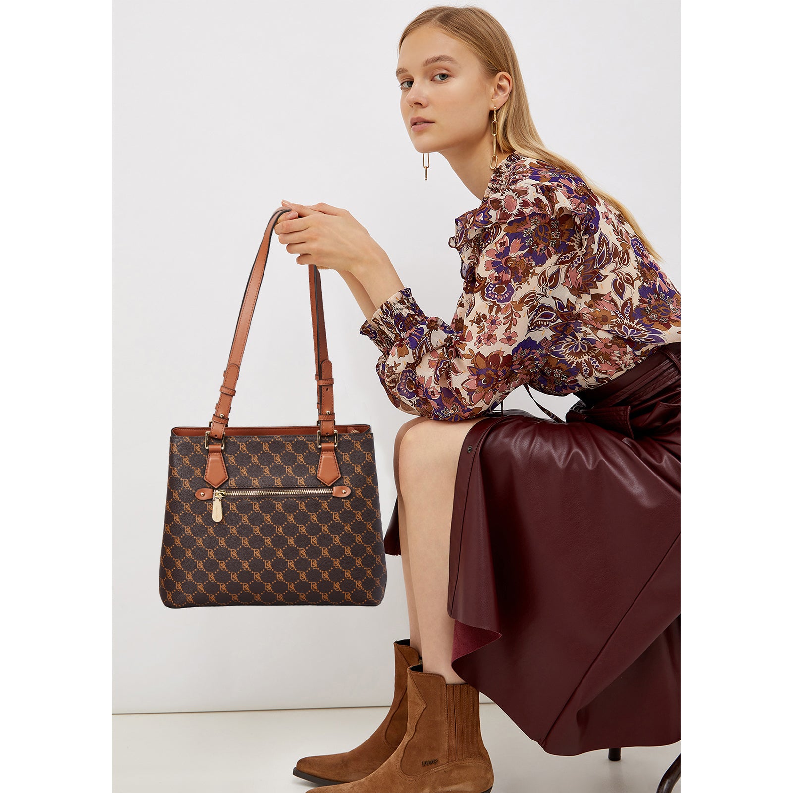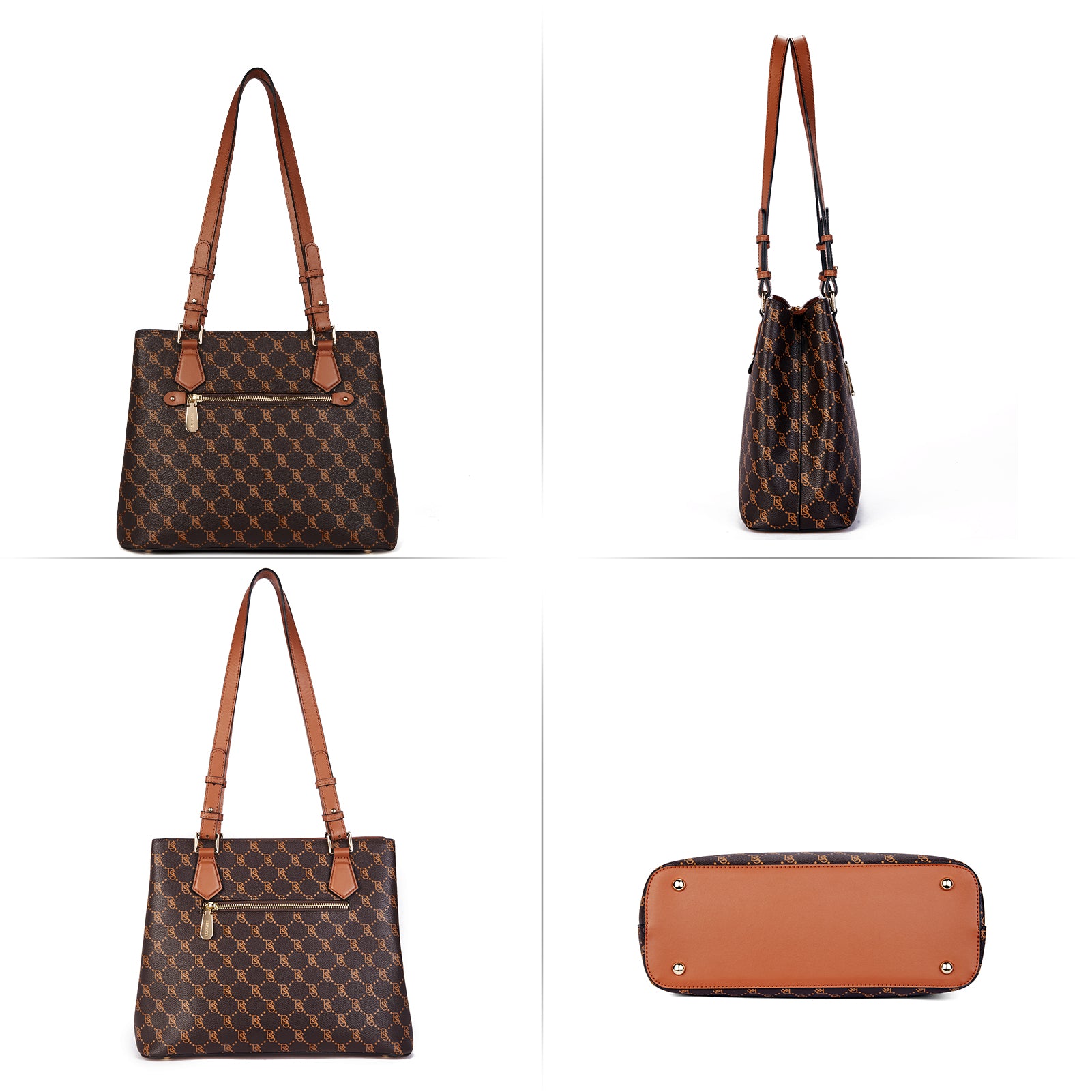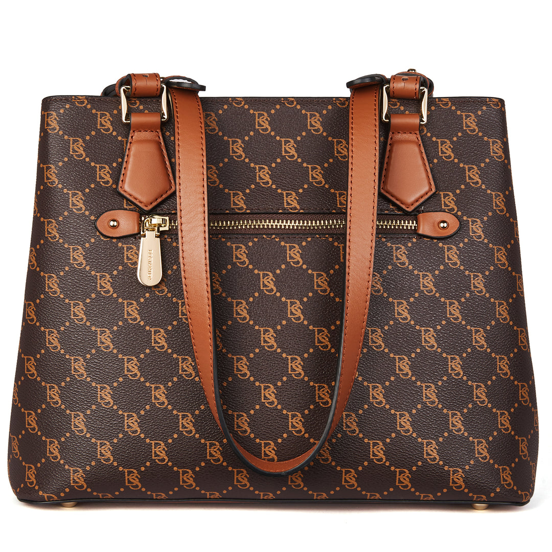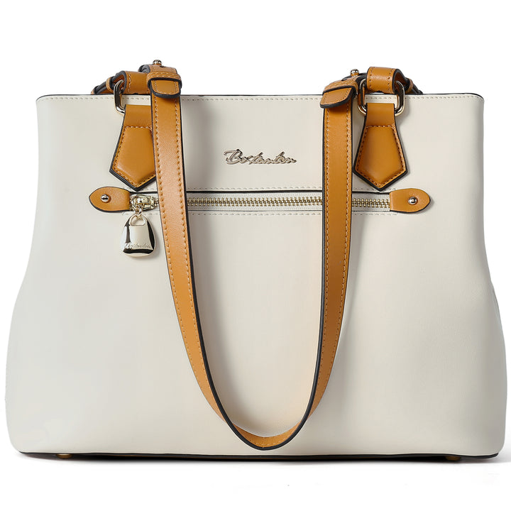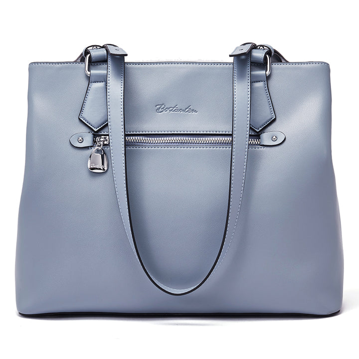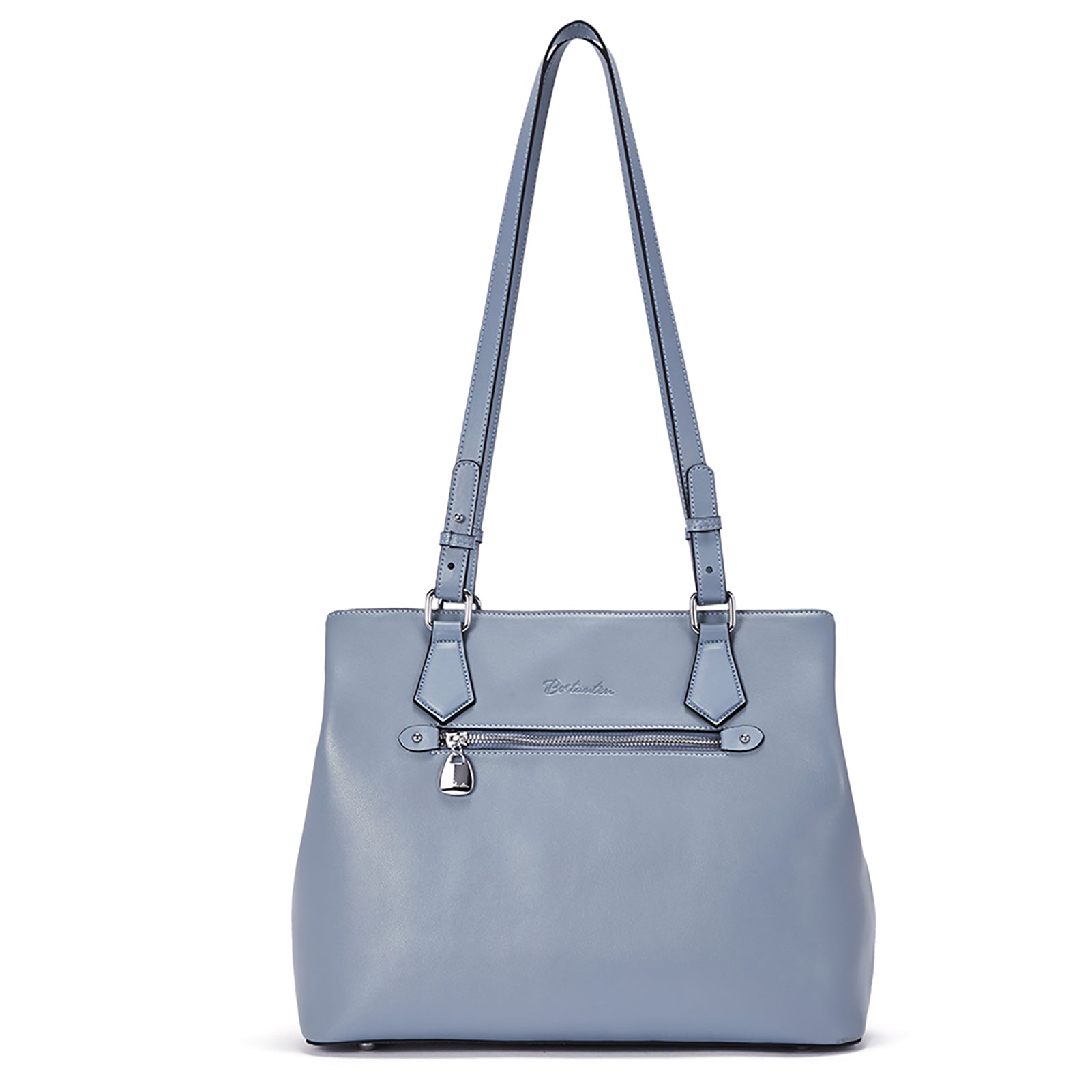 Nevin Structured Leather Shoulder Tote Bag - Front Zipper Pocket