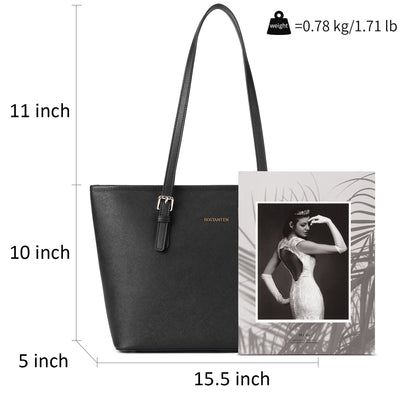 Suitable Dimension : The handbag size is approx 15.5”(L) * 5.0”(W) * 10.0”(H) inch. Durable round handle strap height is 11 inch. Its moderate dimensions make this tote bag ideal for everyday use, whilst the slim and comfortable handles make it a pleasure to carry, either over the shoulder or in hand.